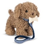 A készlet tartalmaz egy hordozható kiságyat és egy kis rágójátékot is, így a plüsskutyával való játék még valósághűbb és még izgalmasabb lesz.
