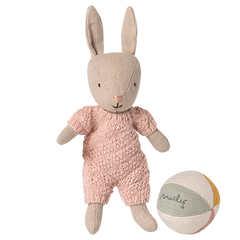 Maileg homokos nyuszi Micro kötött ruhákban, kiegészítőkkel Rose