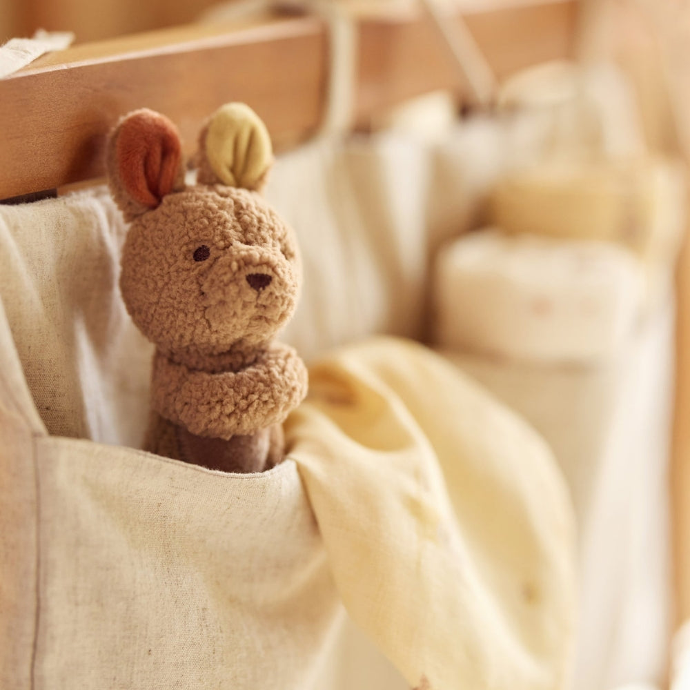 A Jollein kis kenguru motívummal ellátott csörgője imádnivaló társ a mindennapi játékhoz és az öleléshez.