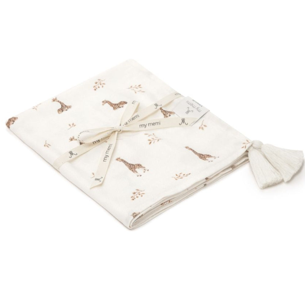 A Memi Giraffes kollekciójából származó 75x100 cm-es bambusztakaró rendkívül puha és kellemes tapintású.