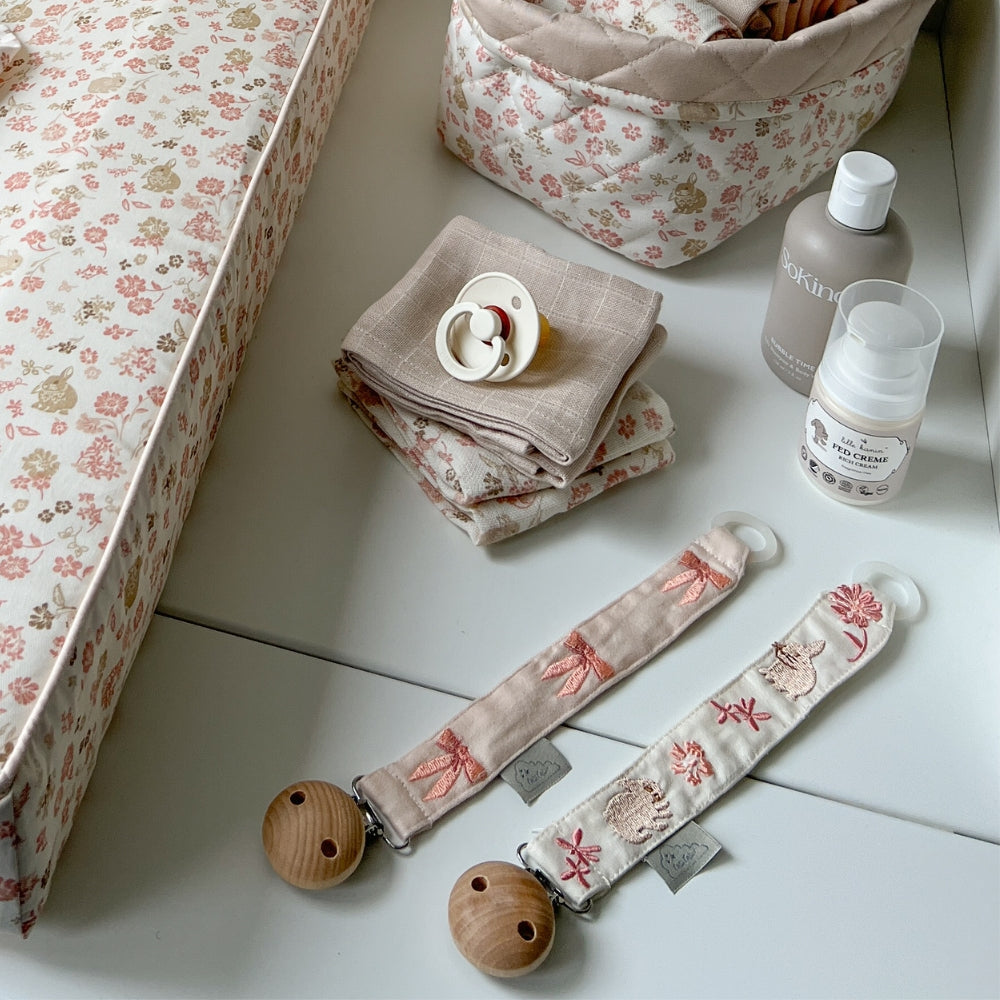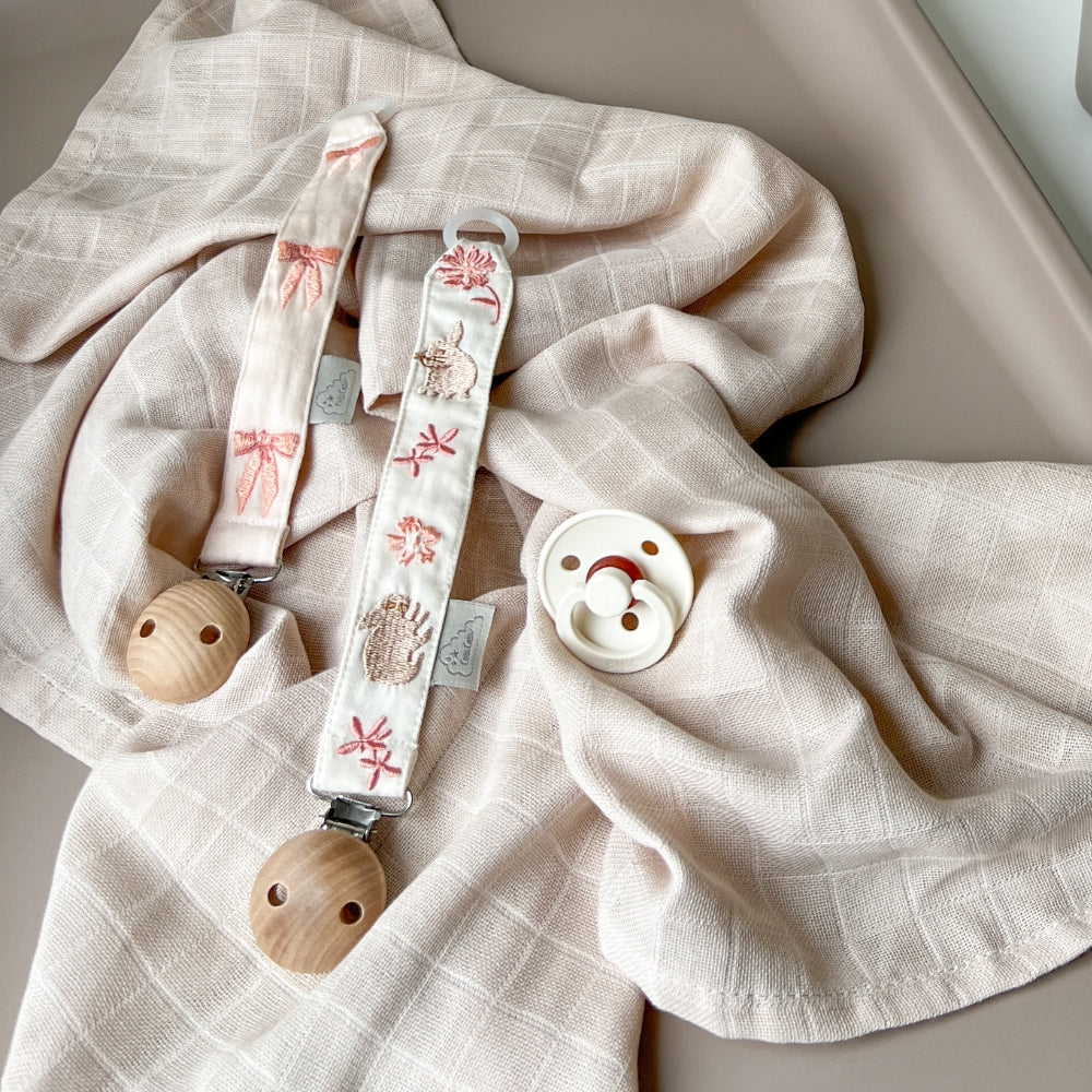 A természetes fából és nikkelmentes fémből készült elegáns klipsz lehetővé teszi, hogy a baba medálját biztonságosan rögzítse a baba ruhájához, megvédve a cumit a leeséstől és a szennyeződéstől.