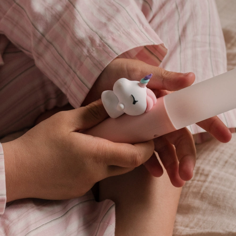 Az aranyos egyszarvú dizájnnak köszönhetően a bébilámpa nemcsak fényforrás, hanem egyedi dekorációs elem is a szobában.