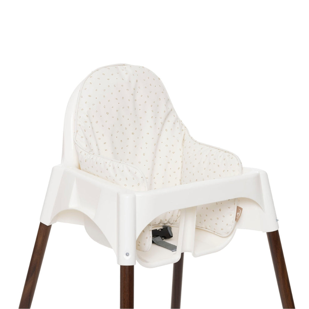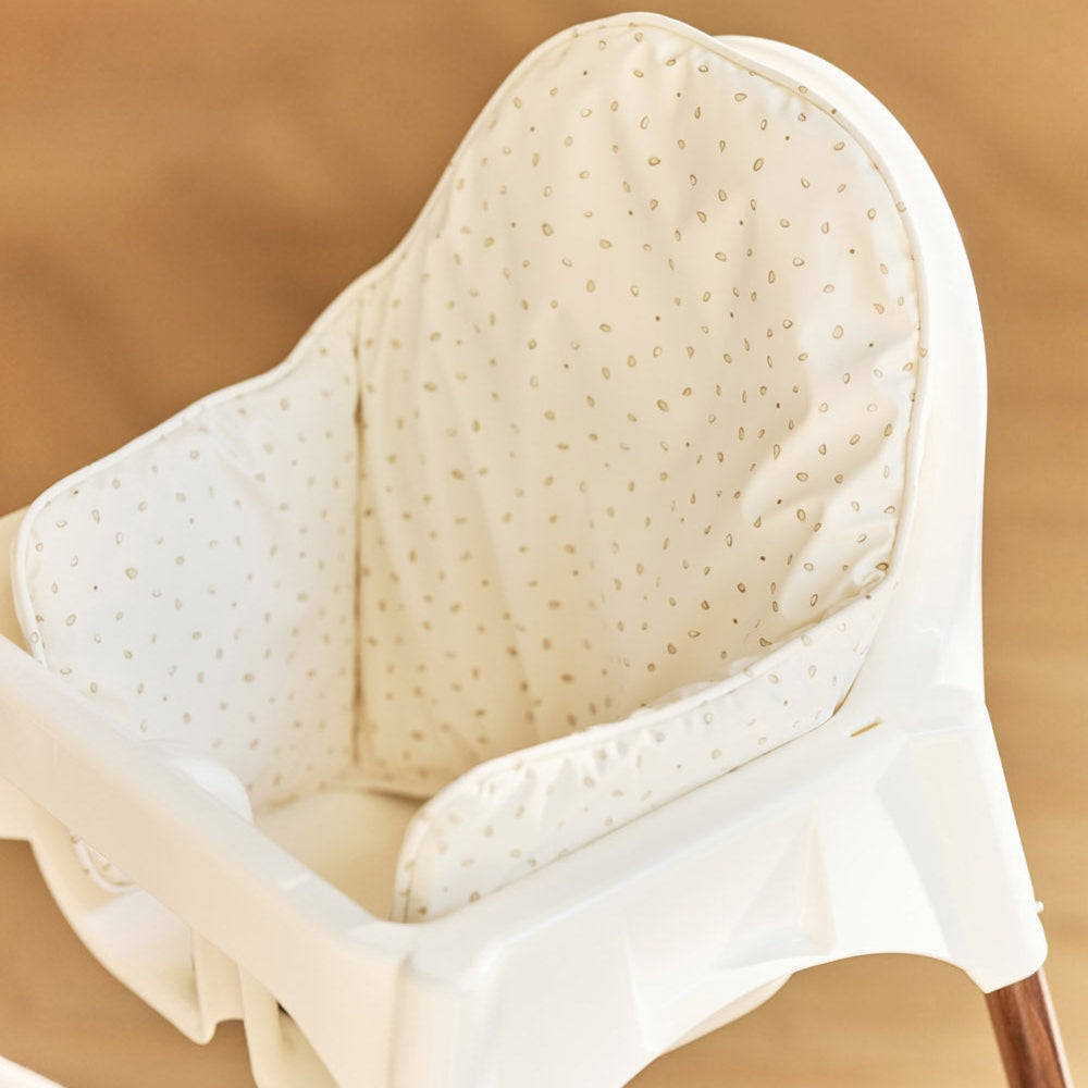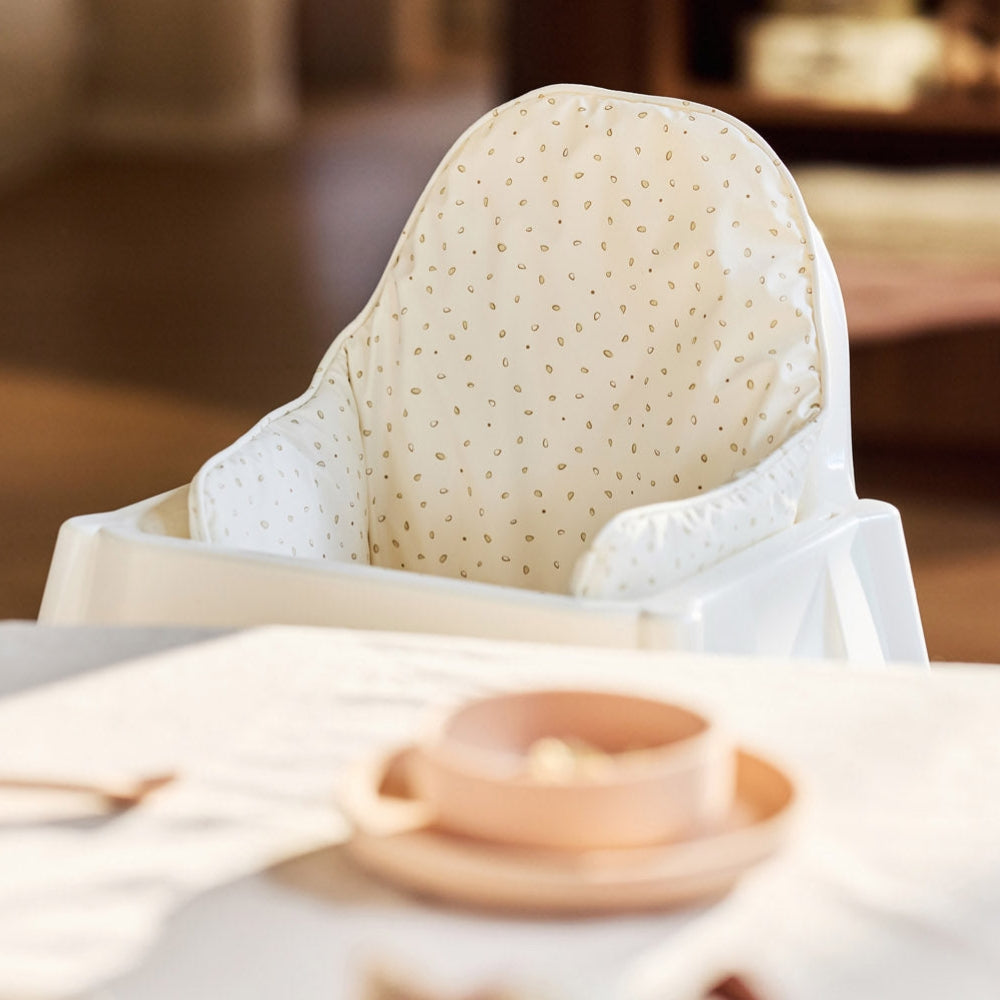 Az etetőszék párnája jól illeszkedik az üléshez, és hangulatossá teszi az étkezőhelyet.