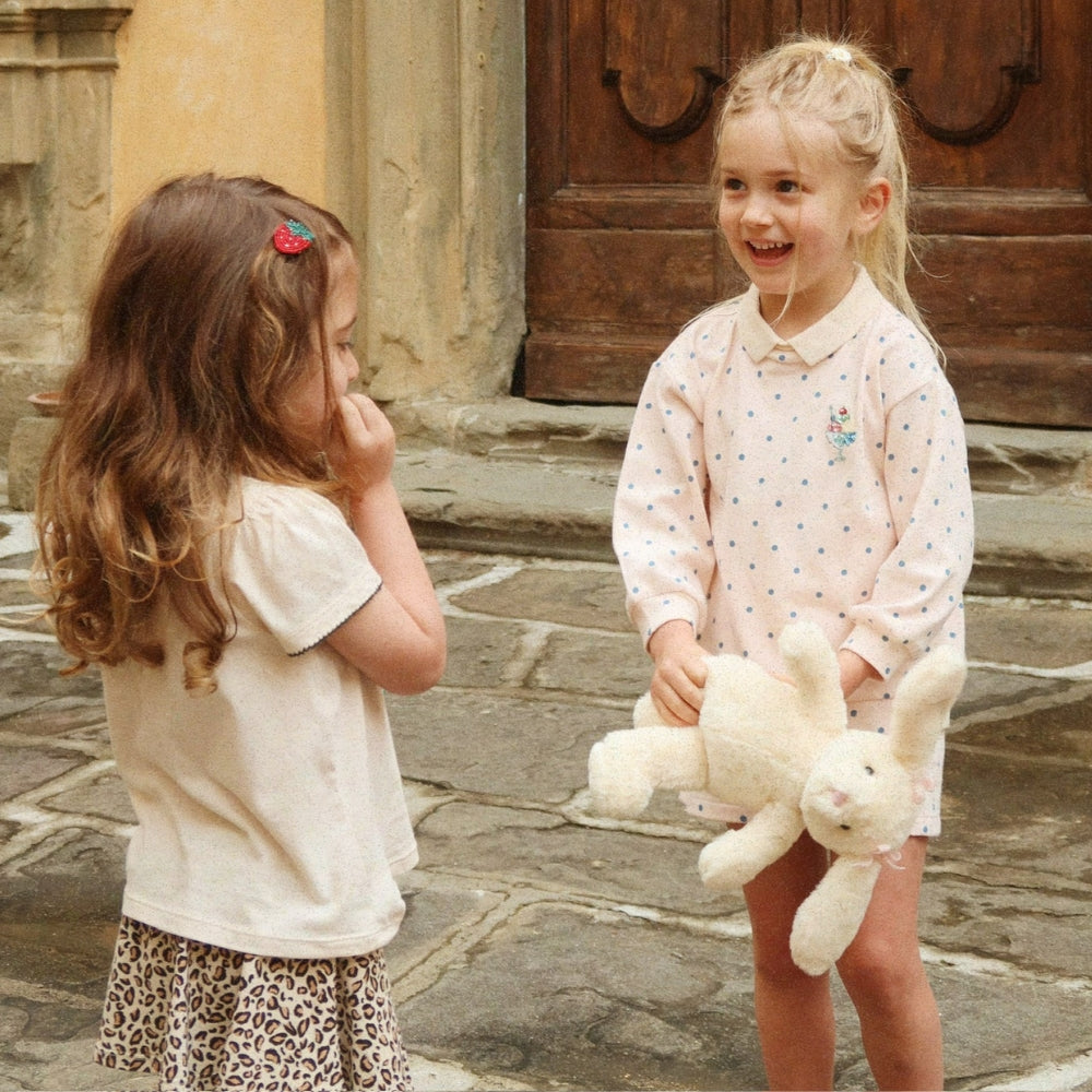 A kislányos pulóver GOTS tanúsítvánnyal rendelkező bio pamutból készült, ami garantálja az anyag biztonságát és legmagasabb minőségét.
