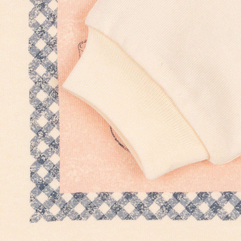A kislányos pulóver GOTS tanúsítvánnyal rendelkező bio pamutból készült, ami garantálja az anyag biztonságát és legmagasabb minőségét.