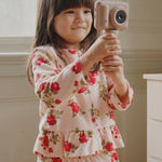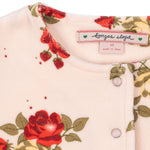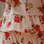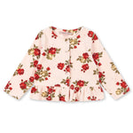 A Konges Slojd lánykardigán puha, velúr tapintású pulóver, aranyos baszkkal, és elöl praktikus nyomógombokkal záródik.