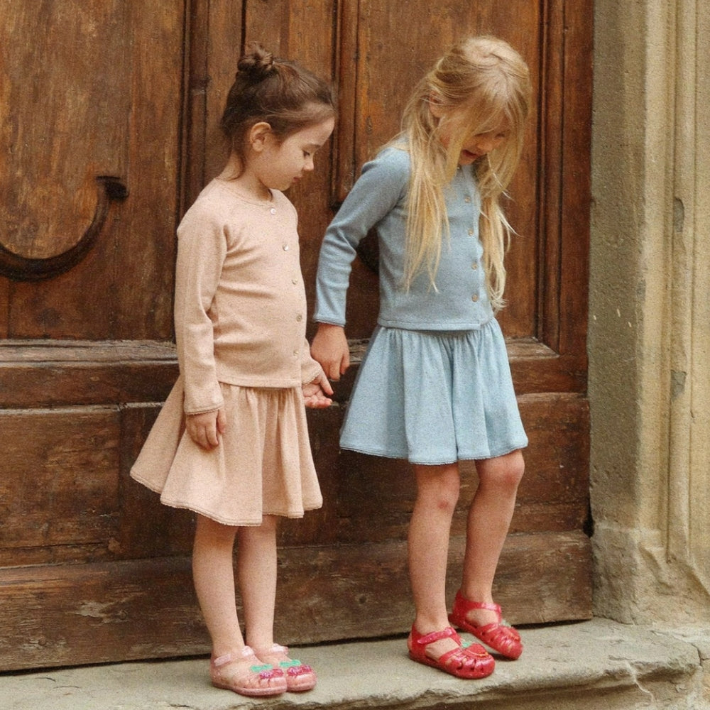 A Strawberry árnyalatú modell minden együttesnek bájt kölcsönöz, és a Konges Slojd márkára jellemző figyelem a részletekre teszi ezt a ruhadarabot kiemelkedővé kivételes esztétikájával és tartósságával.