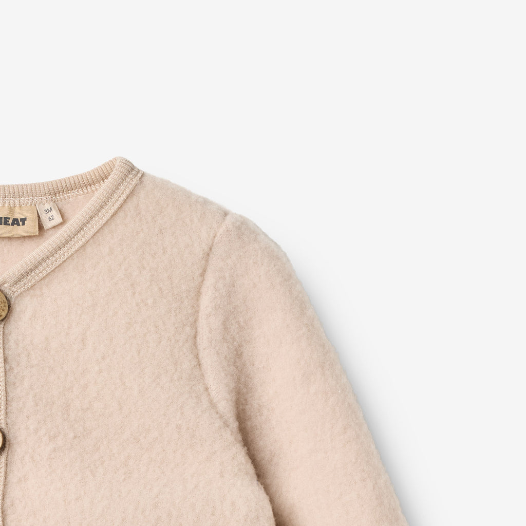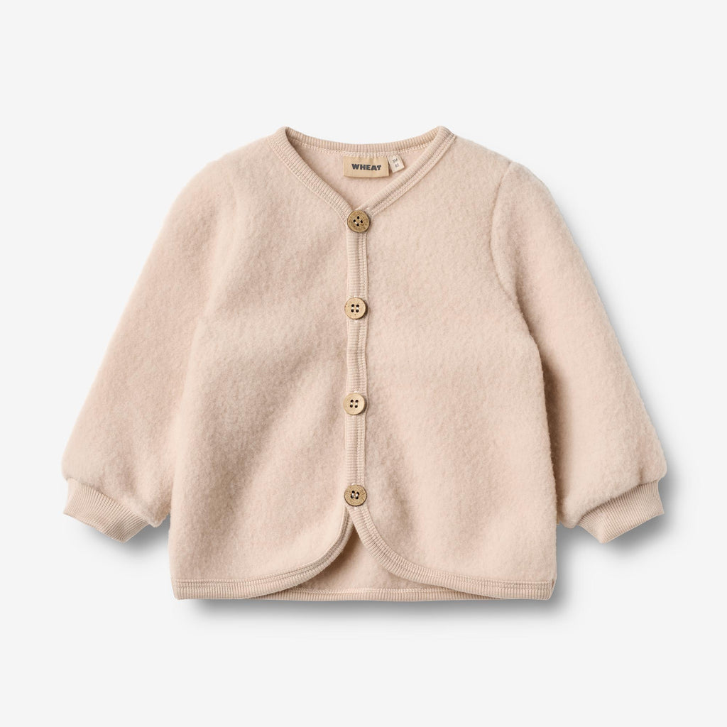 A gyapjú természetes tulajdonságainak köszönhetően a Wheat ruházat segít szabályozni a gyermek testhőmérsékletét, így a lányoknak szánt kardigán tökéletes a réteges öltözködéshez.
