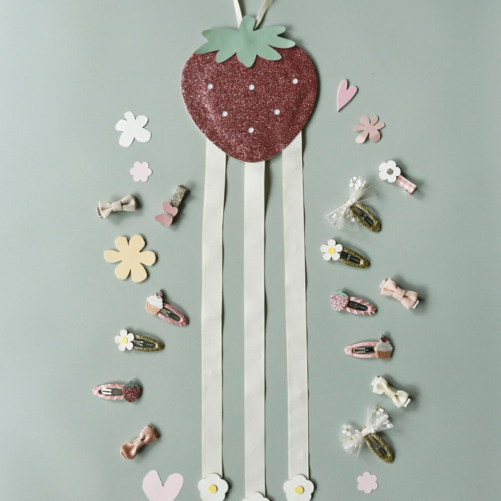 A Sweet Strawberry 3 szalagos hajtű akasztó a Rockahulától tökéletes megoldás kedvenc hajkiegészítőid tárolására és rendszerezésére.