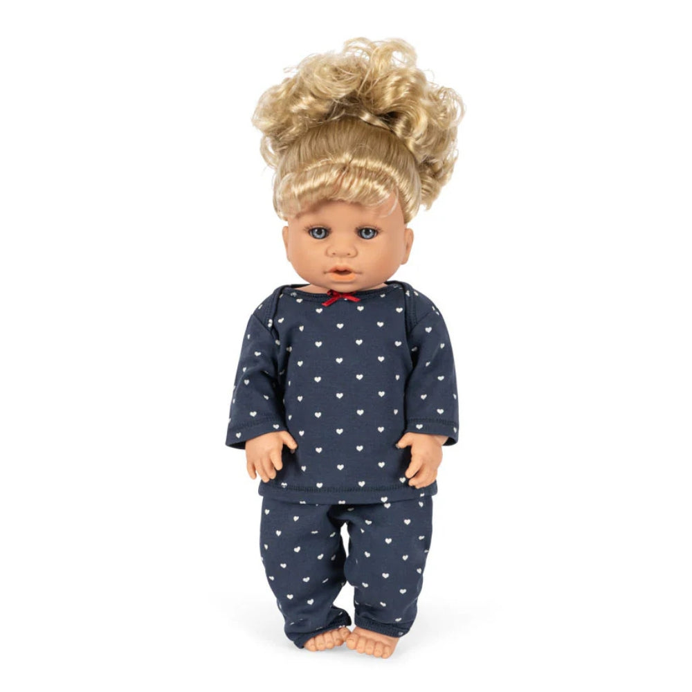 Viola puha, kétrészes pamut szettbe van öltöztetve, ami puha és időtlen megjelenést kölcsönöz neki.