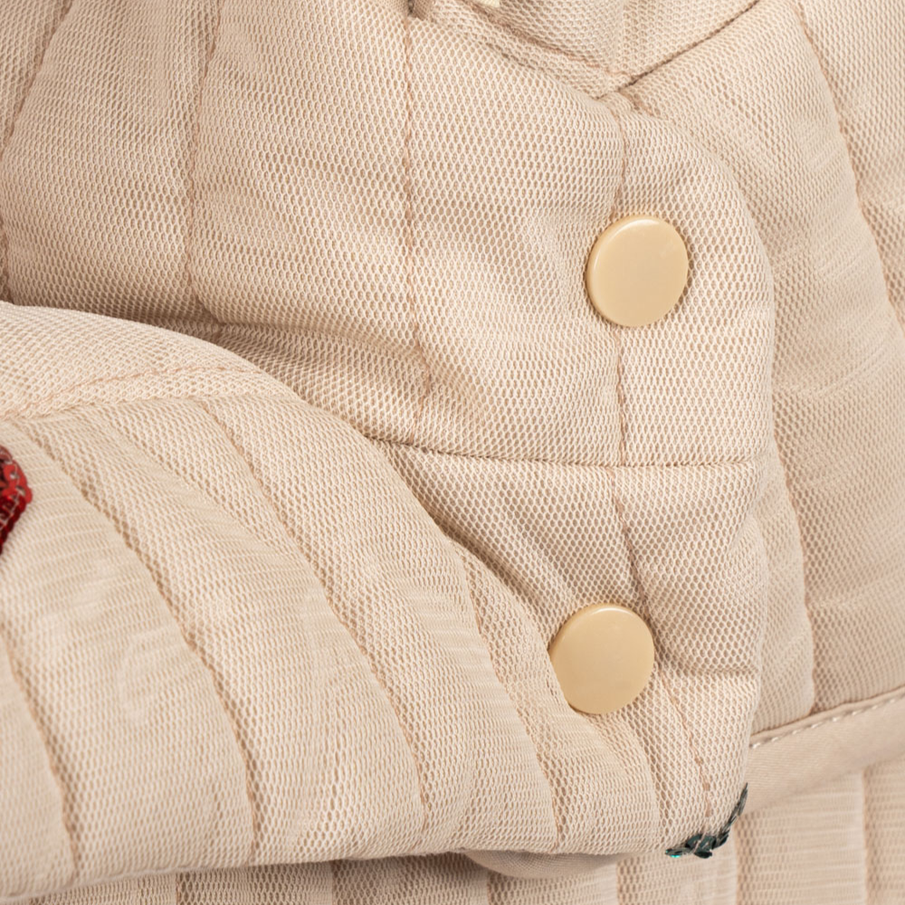 Ez a babakocsi négy nagy, stabil kerékkel, lágyan kidolgozott fogantyúkkal és steppelt anyaggal rendelkezik, finom szegéllyel, ami nagyon elegáns megjelenést kölcsönöz neki.