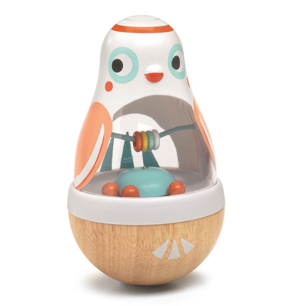 A játék ide-oda mozog, de a lekerekített talpnak köszönhetően nem borul fel.
