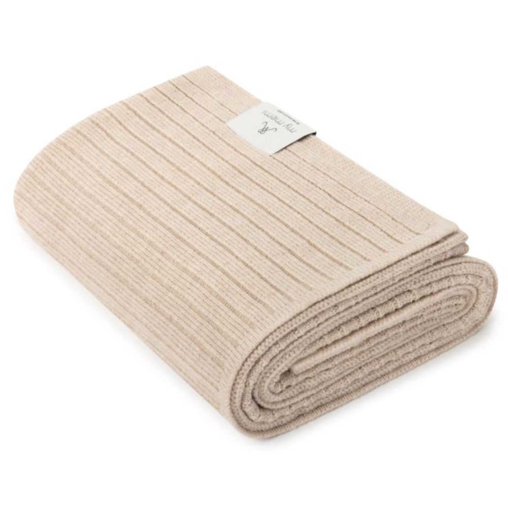 Gyönyörű 100% merinó gyapjú takaró bézs csíkos prémium kollekció a Memi-től.