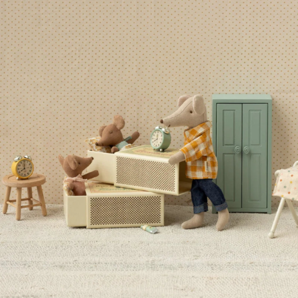 A ruházathoz és az ágyneműhöz használt puha szöveteket finom minták és gyönyörű színek díszítik, így minden Maileg egér egyedi társa a gyermekek kalandjainak.