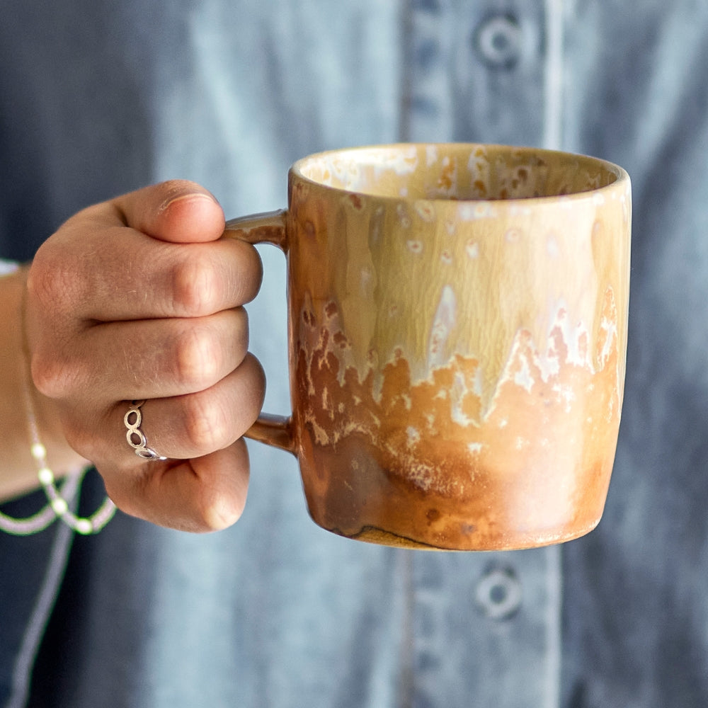 A máz által létrehozott természetes színjátéknak köszönhetően minden bögre egyedi.
