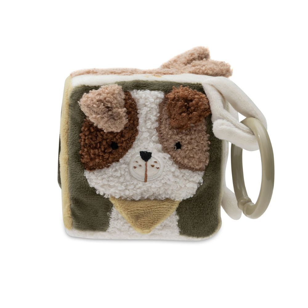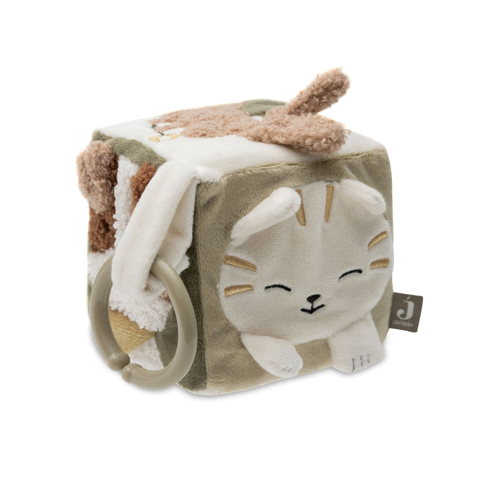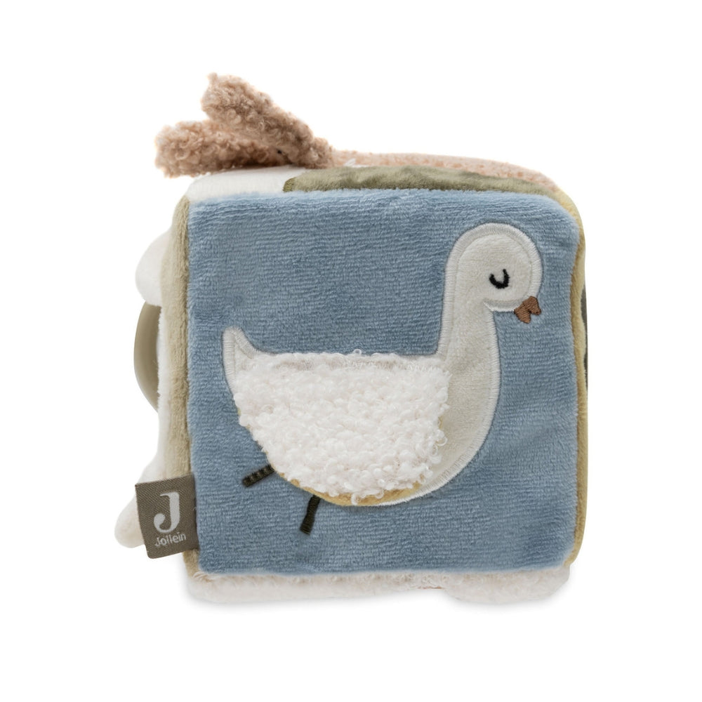 A Tiny Park kollekcióból származó Jollein oktató kocka egy puha és tapintható játék, amelyet a legkisebbek számára készítettek.