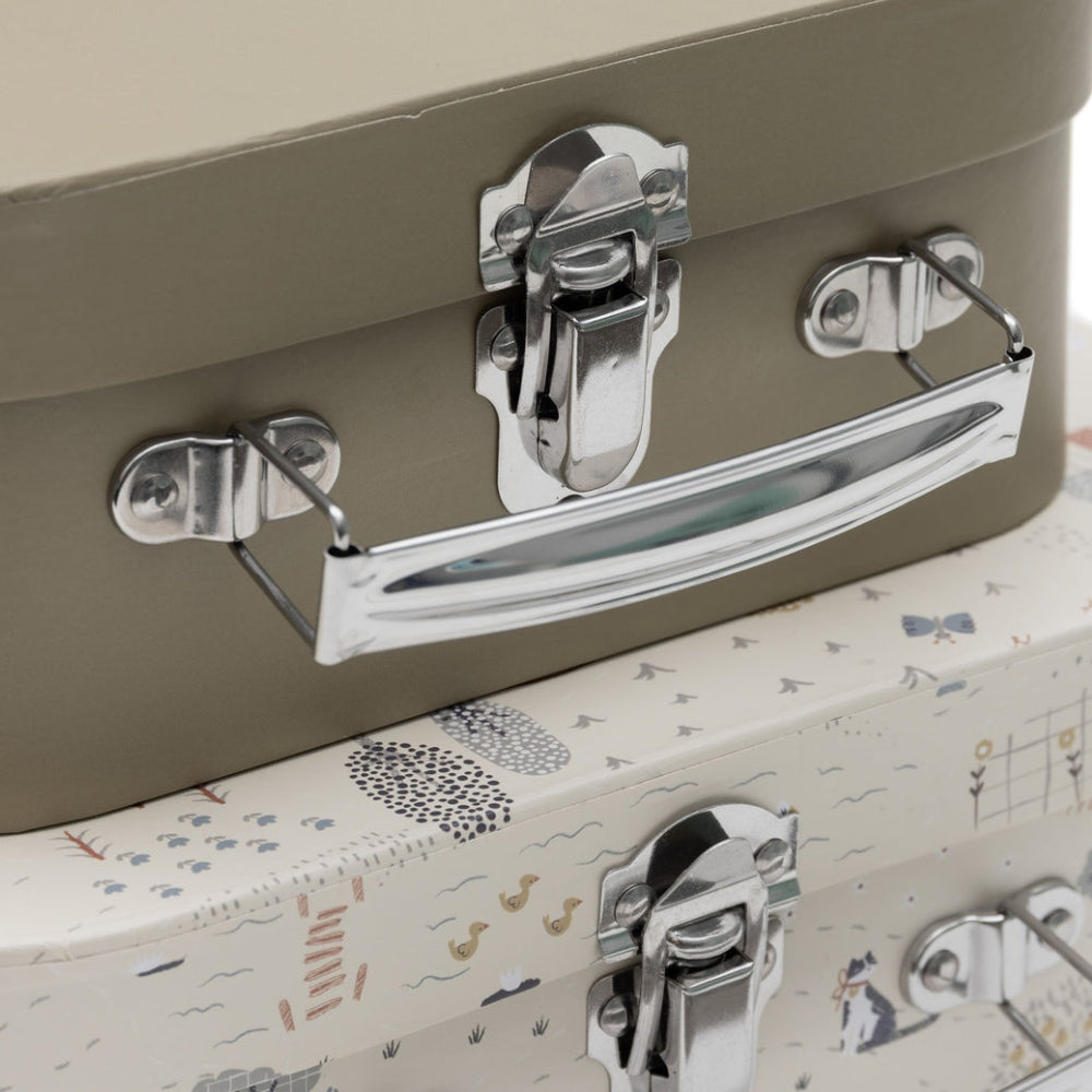 A bőröndök a Tiny Park kollekcióhoz illeszkedő különböző nyomatokkal és ezüst fogantyúkkal rendelkeznek, hogy az egésznek könnyed, játékos hangulatot kölcsönözzenek.