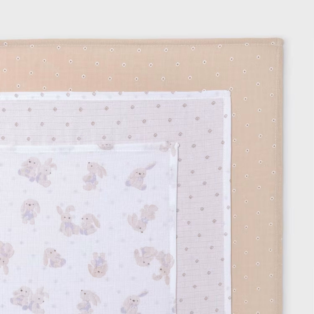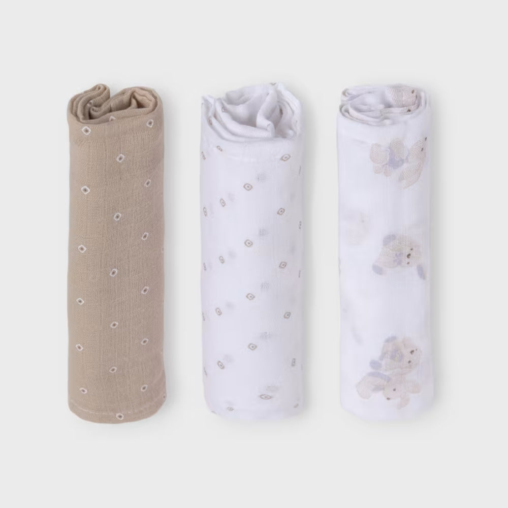 A készlet három puha és gyengéd pelenkát tartalmaz, amelyek 100% pamutból készültek, ideálisak a baba érzékeny bőréhez.