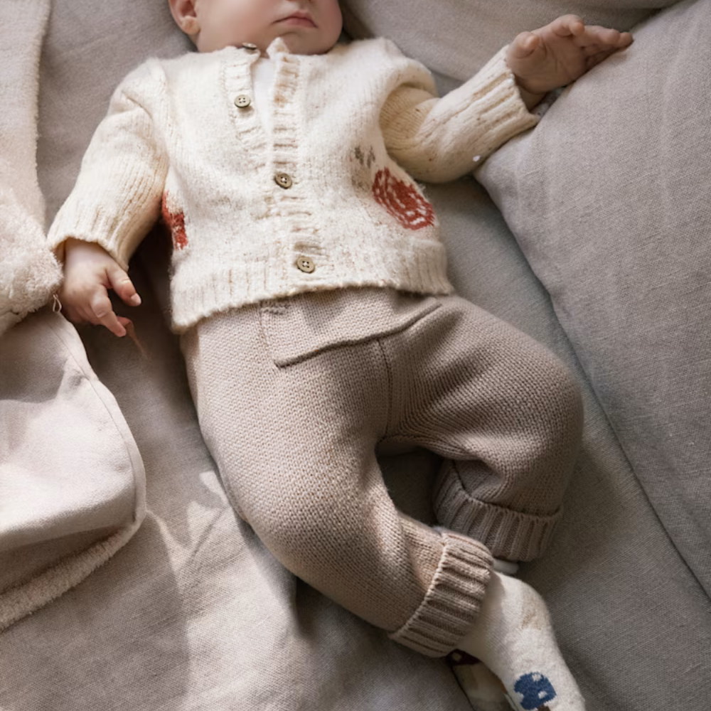 - Anyag: kardigán - 69% akril, 20% pamut, 10% poliészter, 1% elasztán, póló - 95% pamut, 5% elasztán, nadrág - 60% pamut, 40% akril.