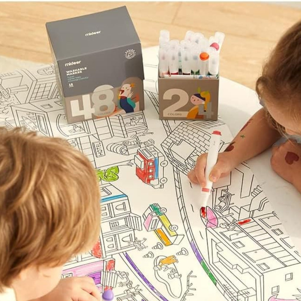 A Mideer 48 darabos mosható filctoll készlet tökéletes választás a színekkel kísérletezni szerető kis művészek számára.