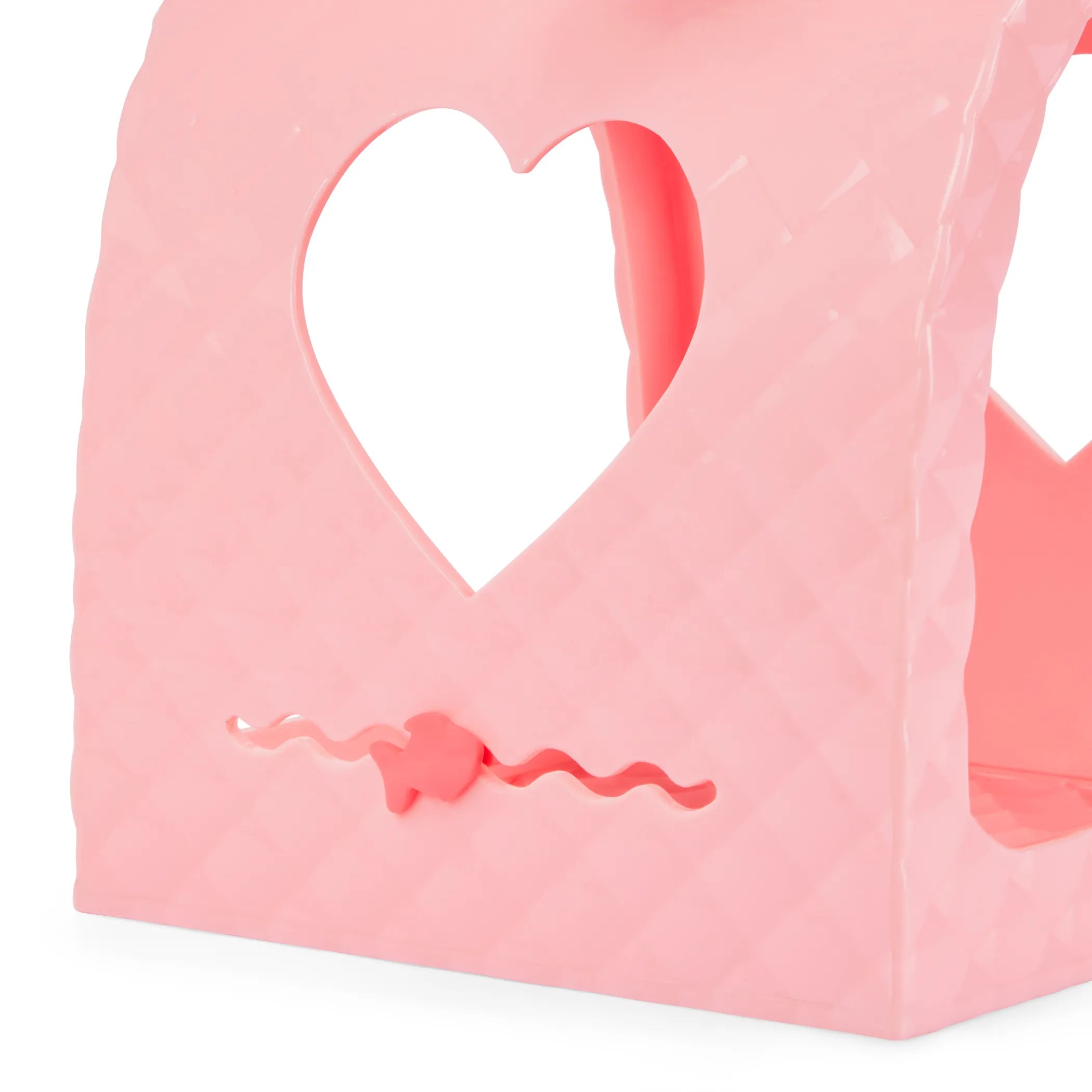 A rózsaszín, áttört szív alakú ház, a kaparófa és a puha ágy kombinálható, így egy kétszintes tornyot alkotva a cica házzal a játék és a mesélés középpontjává válik.