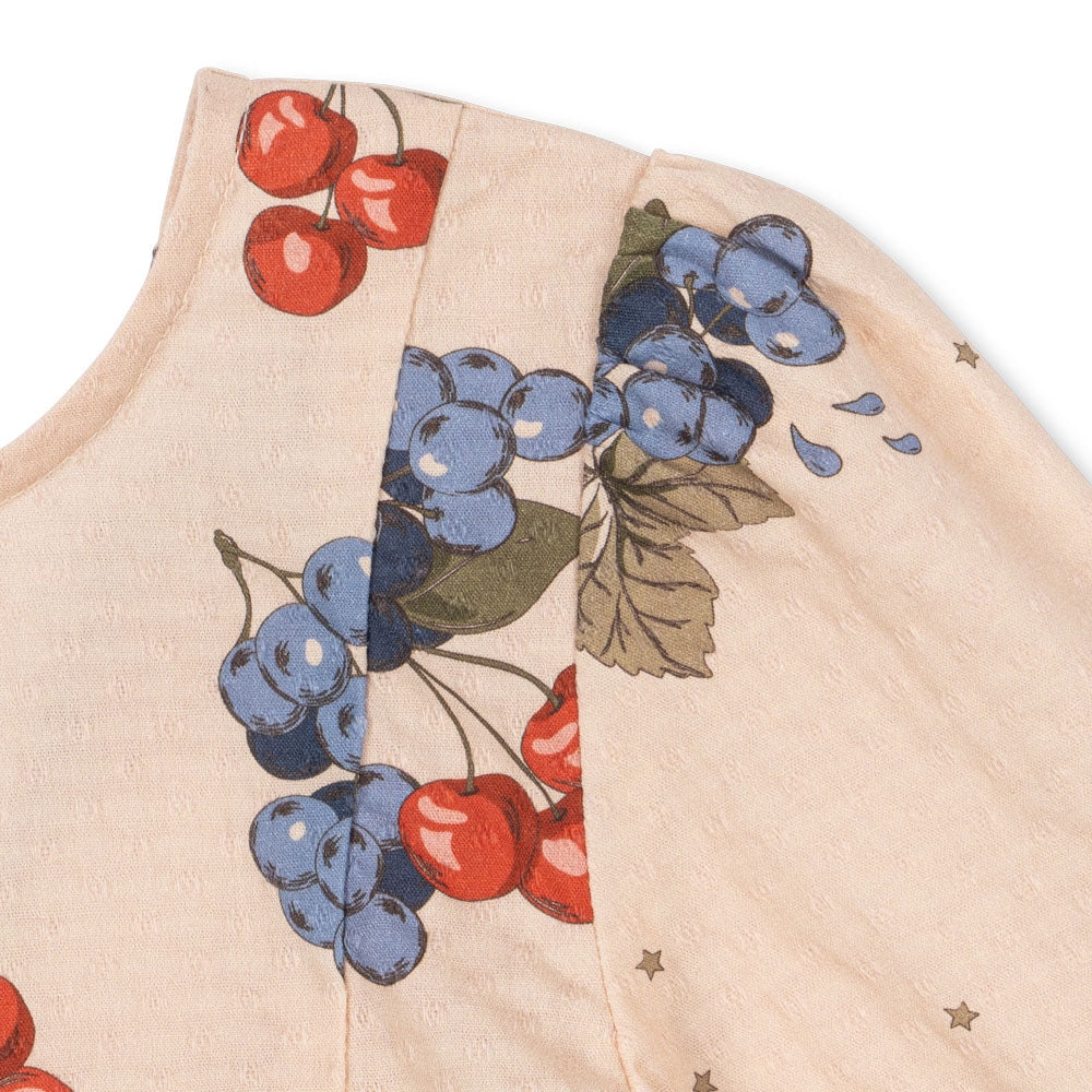 A Konges Slojd híres a részletekre való odafigyeléséről, így minden gombot szövet borít, a szabás pedig kifinomult, hogy ne korlátozza a gyermek mozgásszabadságát.
