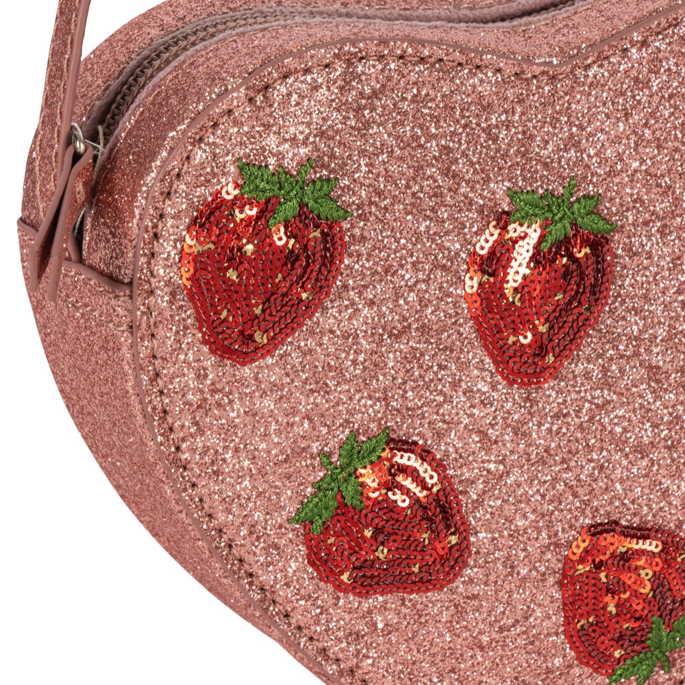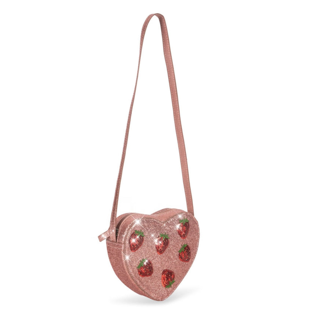 A szív alakú, csillogó, finom csillámokkal borított előlappal készült táska szemet gyönyörködtető, és minden öltözéknek kedves színfoltja.