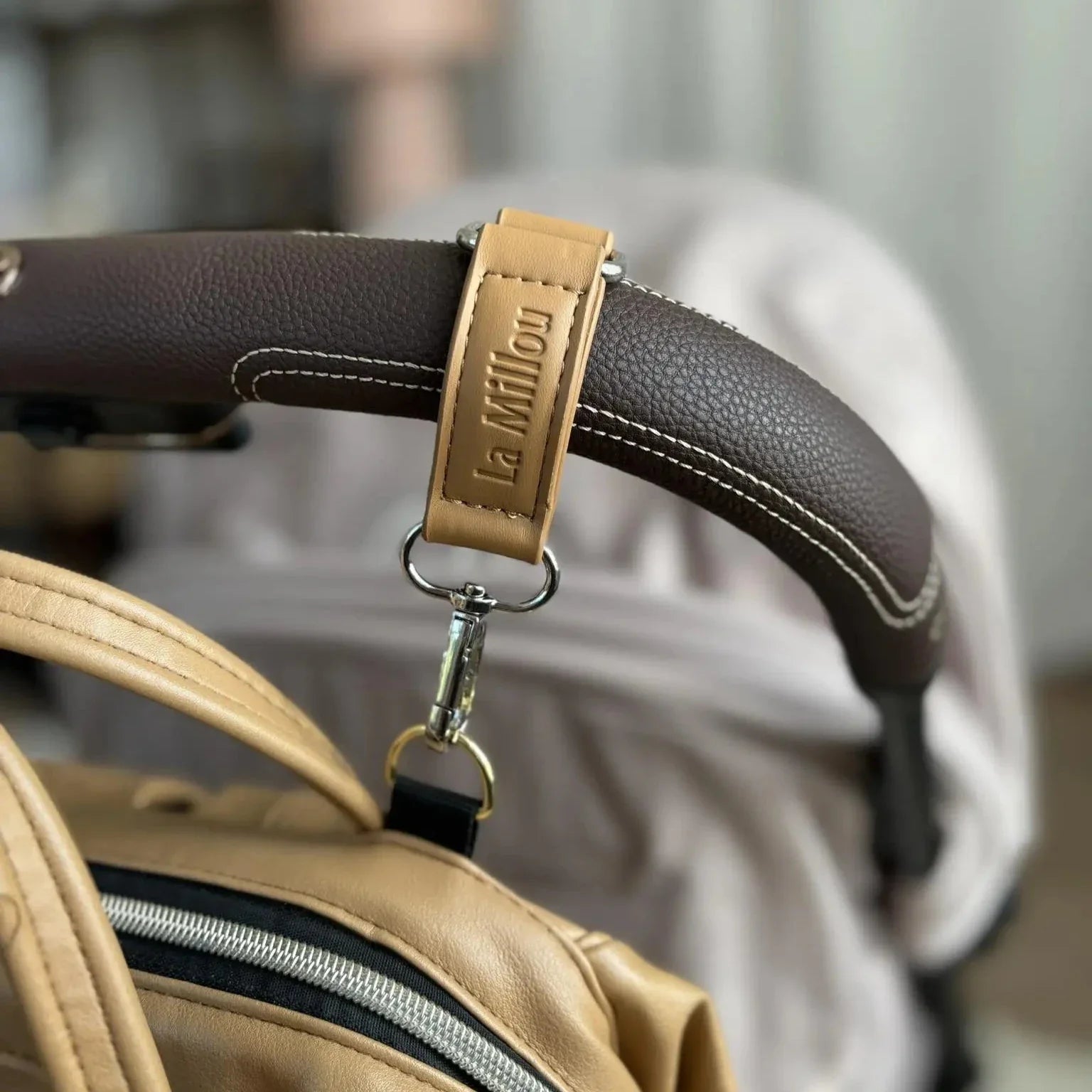 A La Millou univerzális babakocsitartó fekete színű tartóját a táskák és hátizsákok kényelmes rögzítésére tervezték.