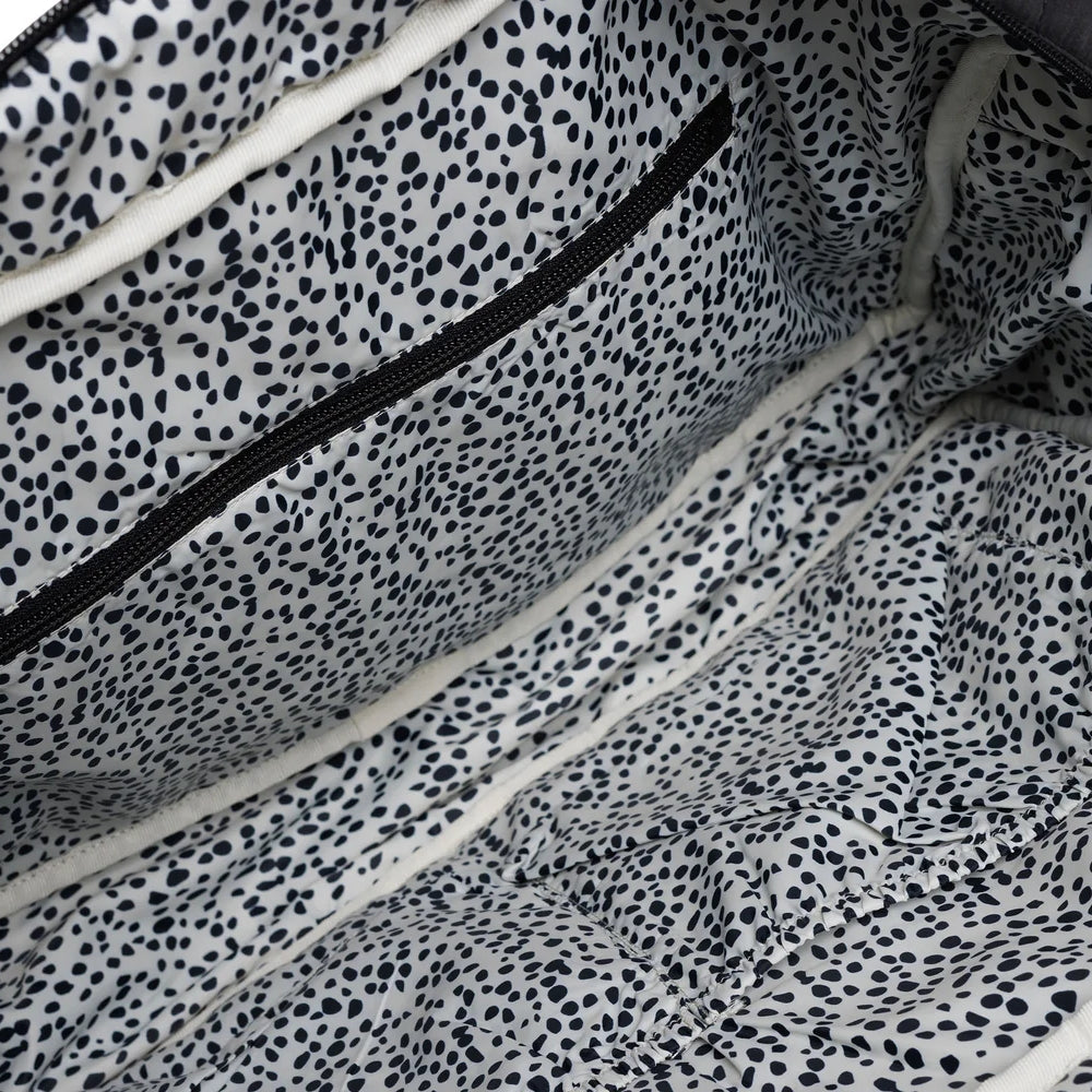 A táska belseje imádnivaló pöttyös béléssel van kibélelve, ami még több bájt kölcsönöz.