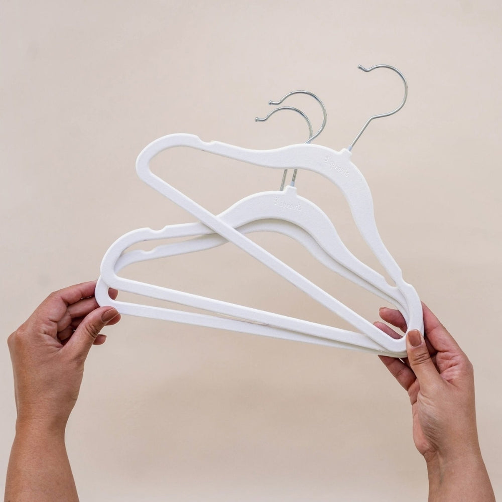 A 3 Sprouts gyermek fogasok csúszásmentes bársony bevonattal rendelkeznek, hogy a ruhák ne csússzanak le róluk.