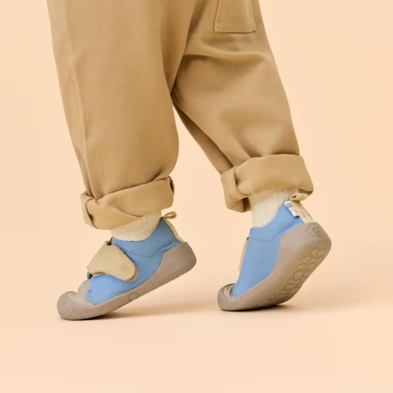 Ezek a mezítlábas csecsemőcipők a mozgásszabadságot és a praktikus védelmet ötvözik, ideálisak otthonra és csendes sétákra.