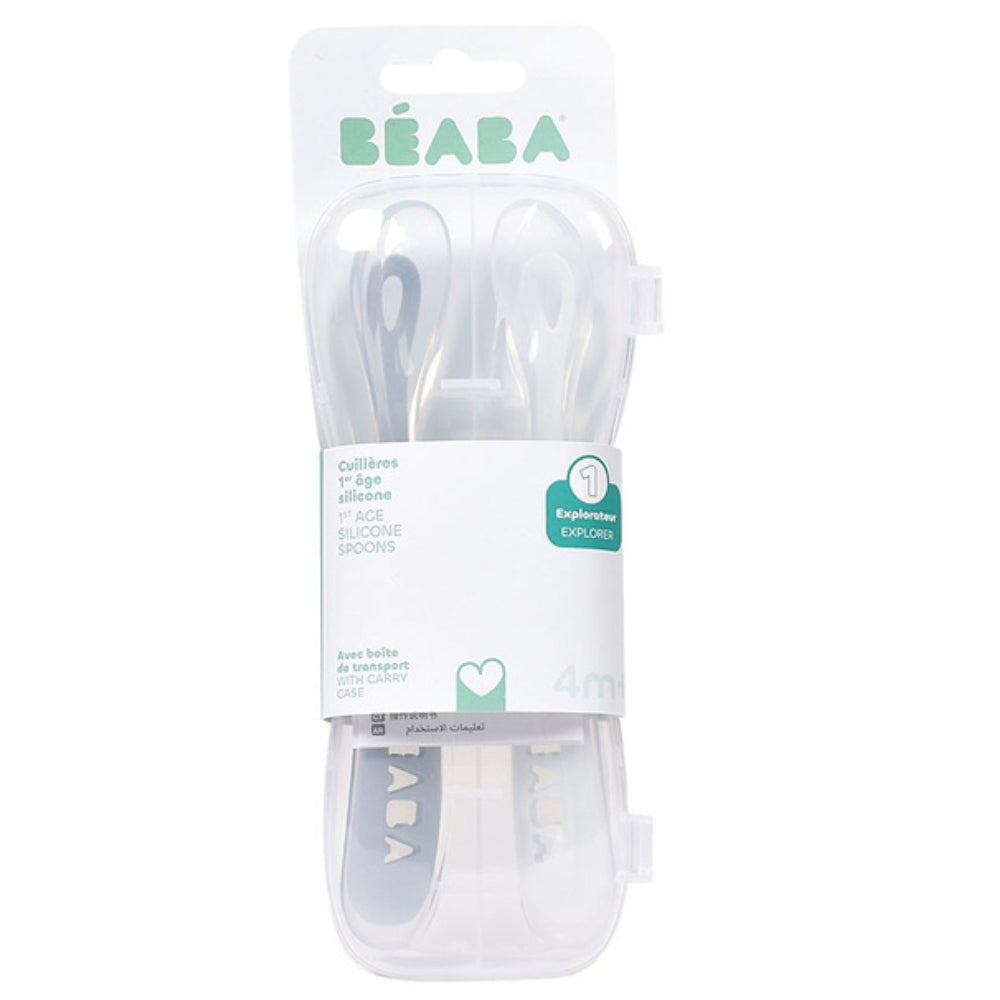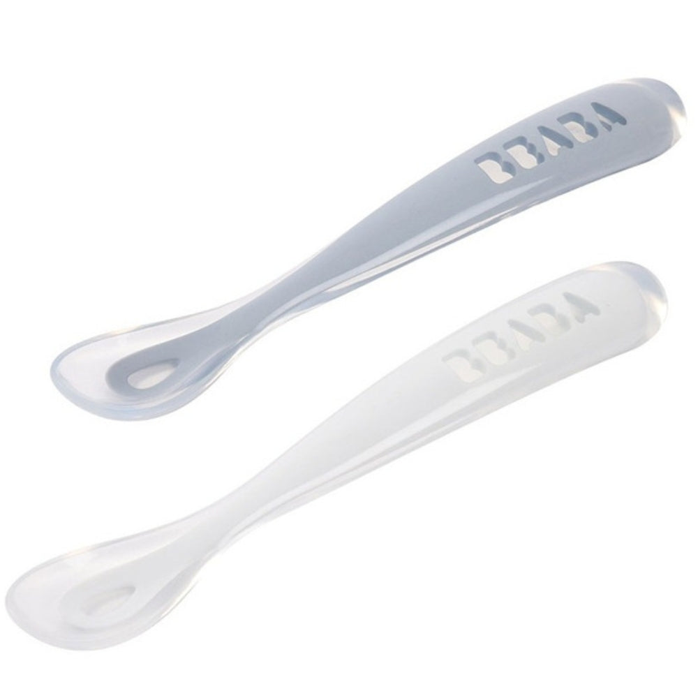 Beaba 2 darabos szilikon kanál készlet utazótáskában Pebble / Cloud kék