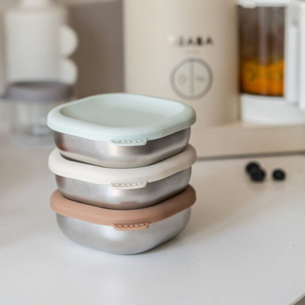 Beaba Rozsdamentes acél ételtartályok szilikon fedővel 3 db. Természetes
