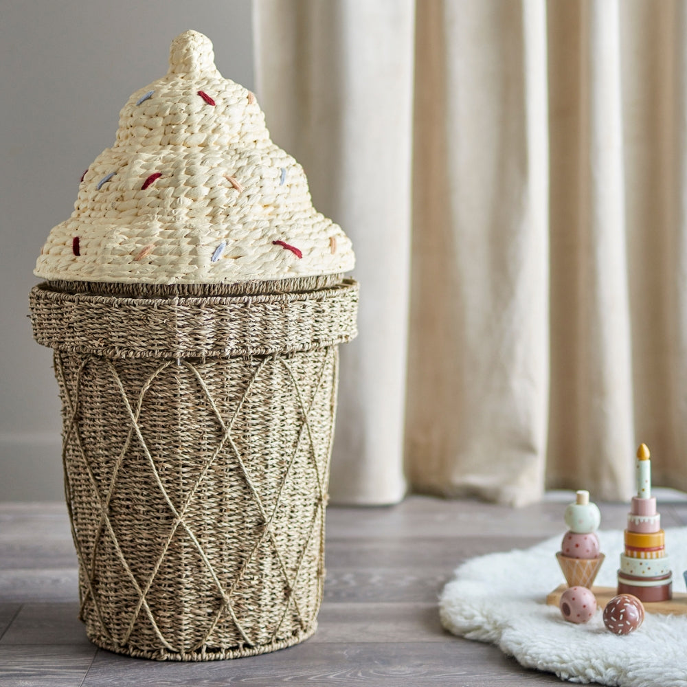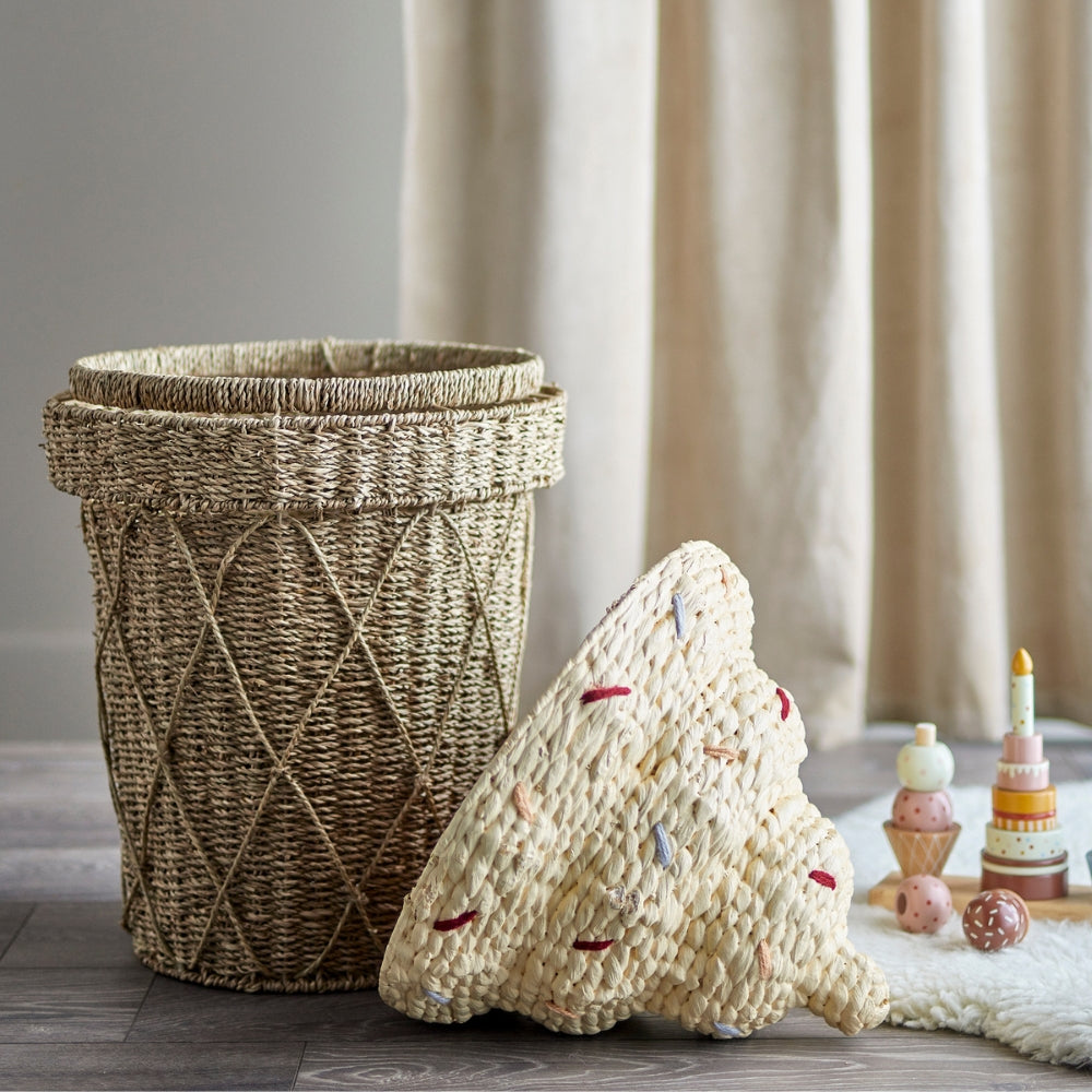 Bloomingville Fagylalt alakú játékkosár fedővel Cillie Water Seagrass