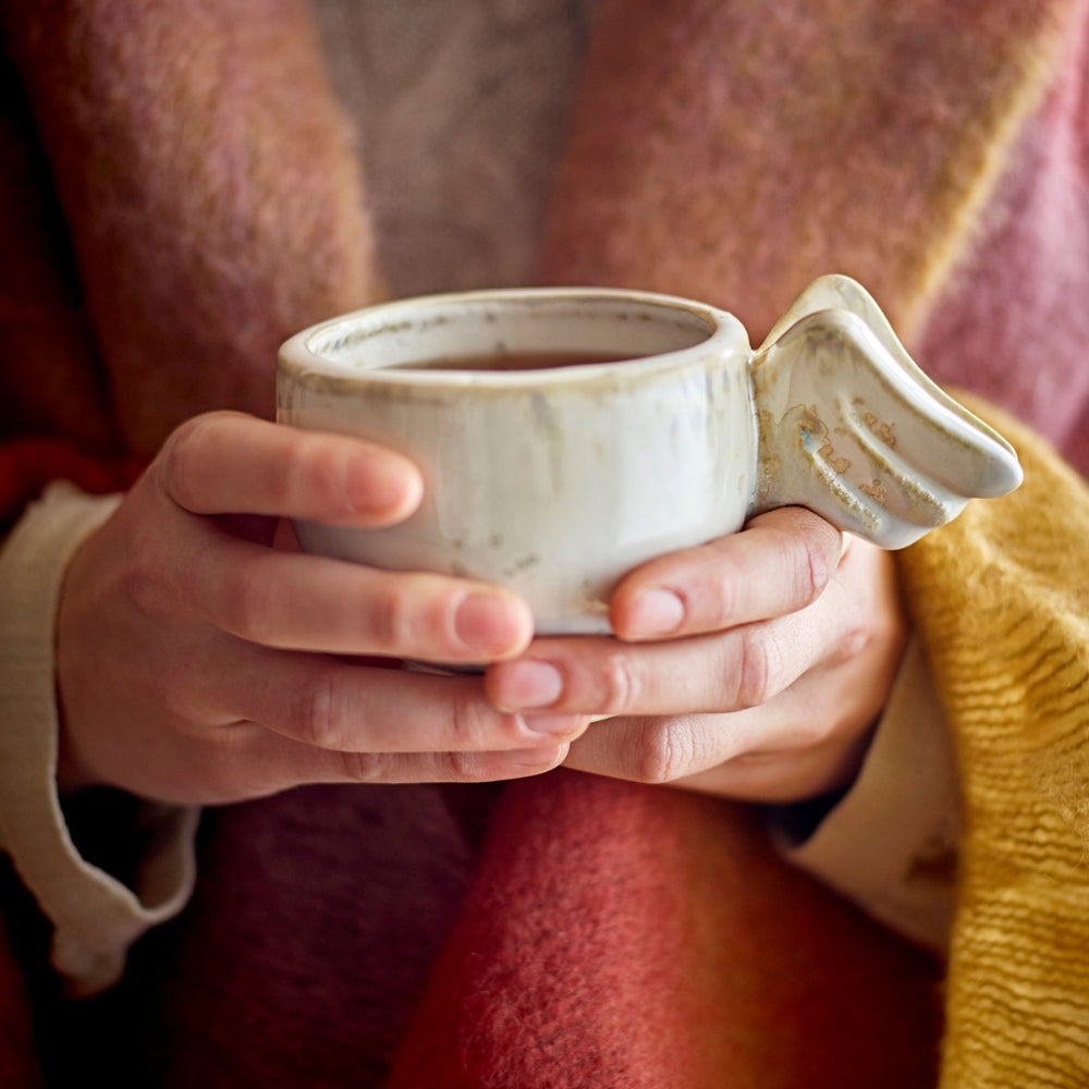 Az angyalszárny alakú fogantyú egyedi bájt kölcsönöz neki, a lágy, természetes színek pedig a bögrét számos enteriőrhöz és stílushoz alkalmassá teszik.