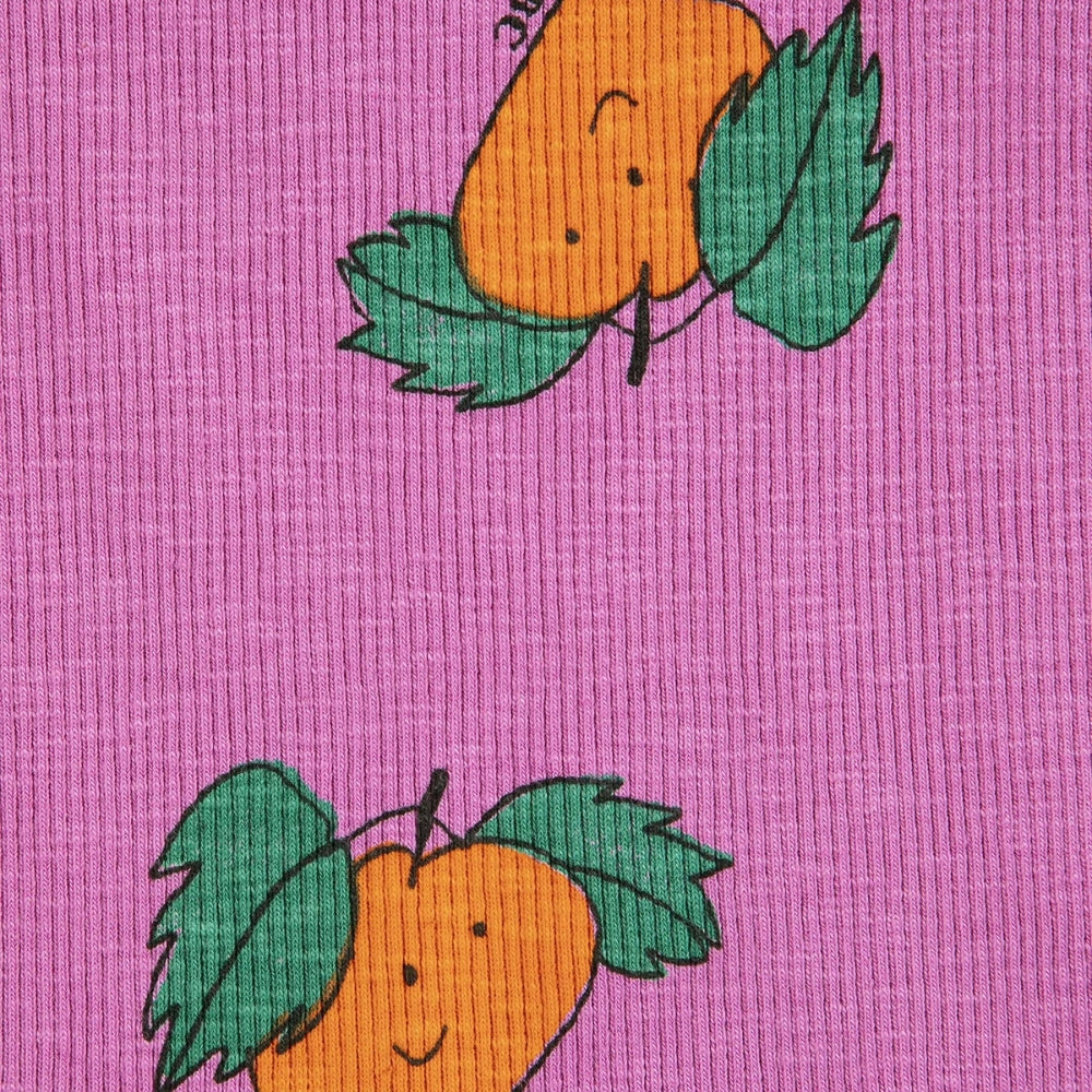 A laza, klasszikus szabás biztosítja a kényelmet a mindennapi tevékenységek során, míg a lágy rózsaszín szín és a gyermeki mandarinszínű nyomtatás könnyedséget és bájt kölcsönöz.