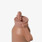 A gyermek termálpalack kényelmes szilikonpánttal van ellátva, így könnyen hordozható táskában vagy hátizsákban.