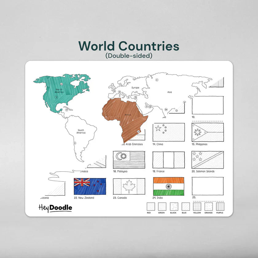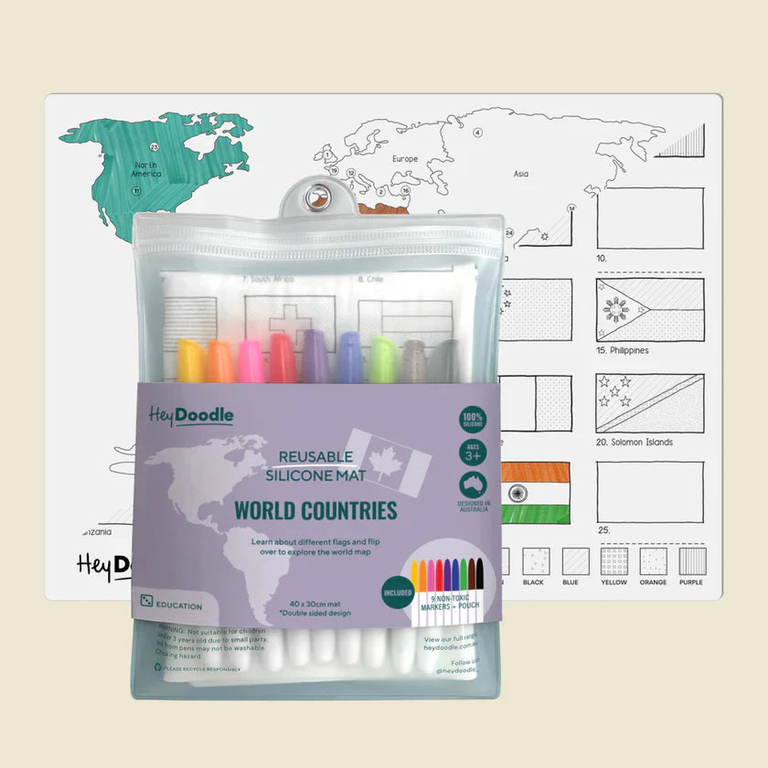 HeyDoodle nagy kétoldalas szilikon színező szőnyeg - világtérkép