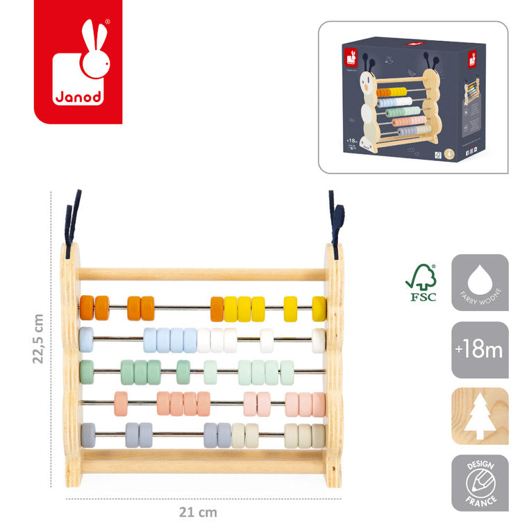 A Janod számoló kerék a Sweet Cocoon sorozatból olyan gyermekek számára készült, akik szeretik játékosan felfedezni a világot.