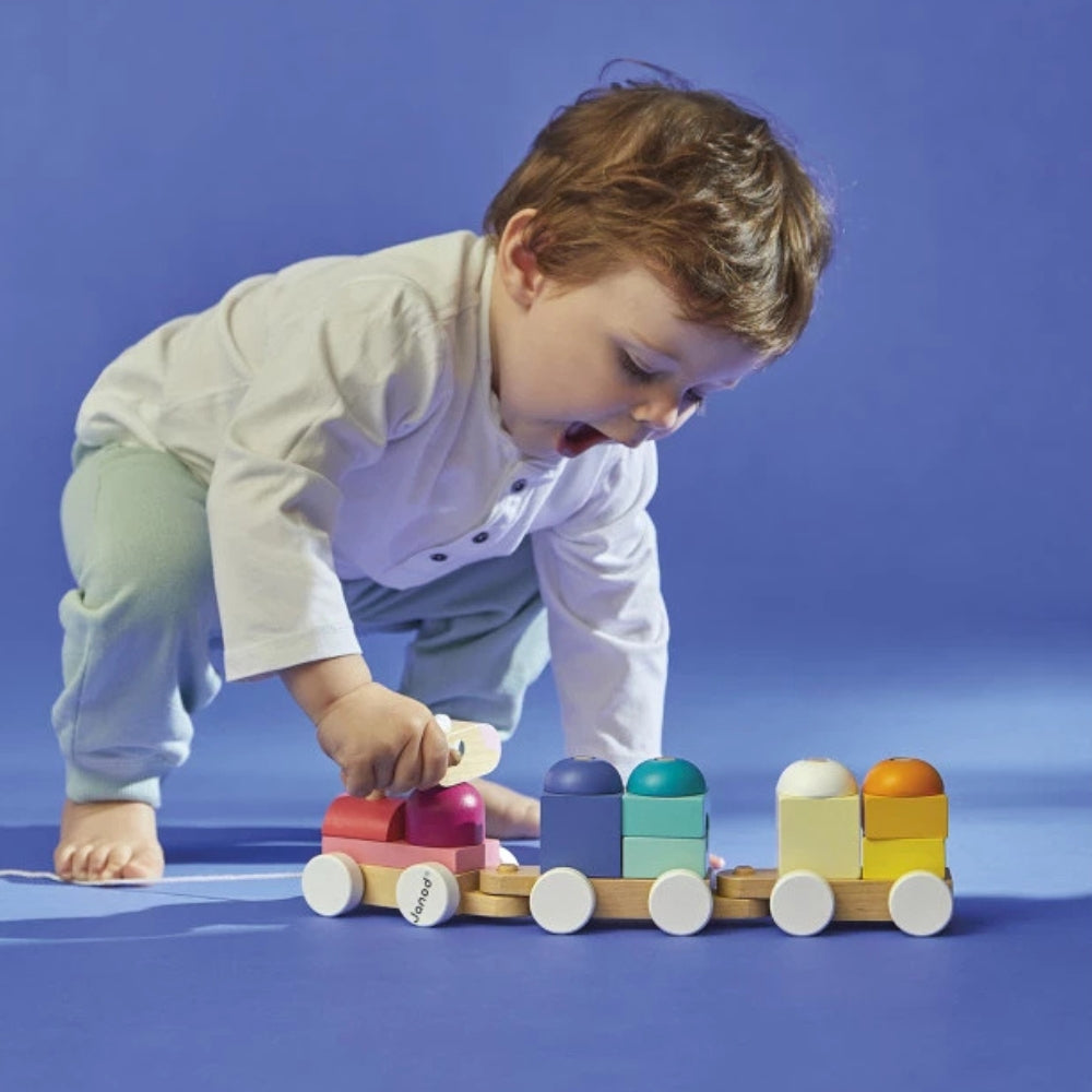 Janod húzható és rakható játék fából készült vonat Zigolos