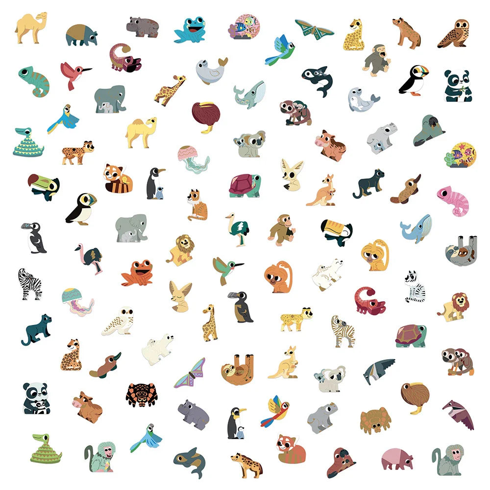 - Készlet tartalma: A készletben található: 100 matrica egzotikus állatokkal, panda alakú csomagolásban.