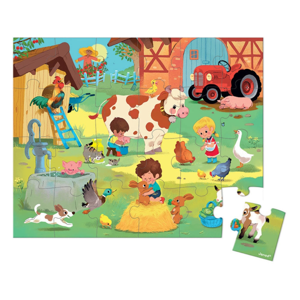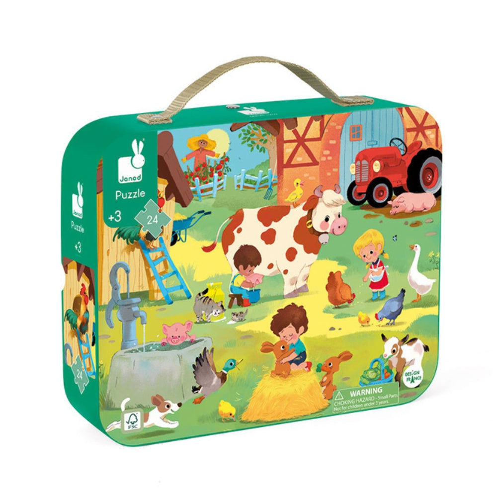 Janod Puzzle egy bőröndben Egy nap a farmon 24 darab
