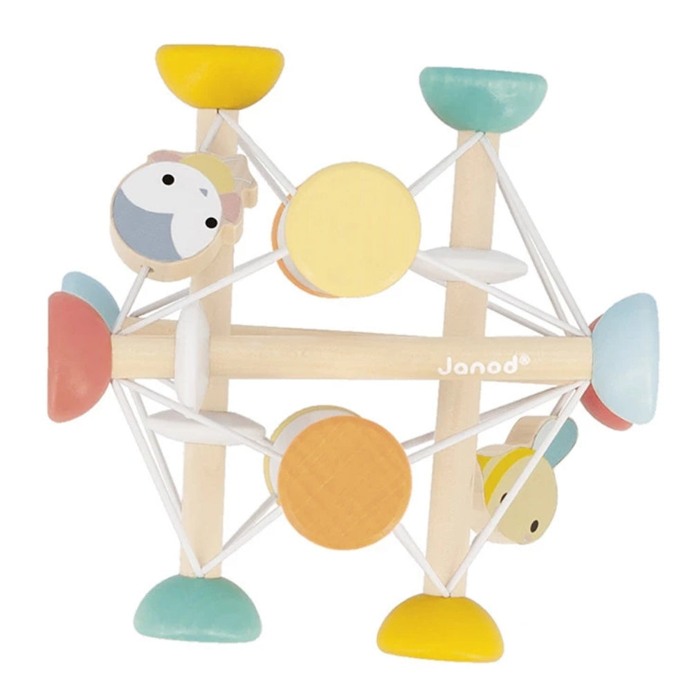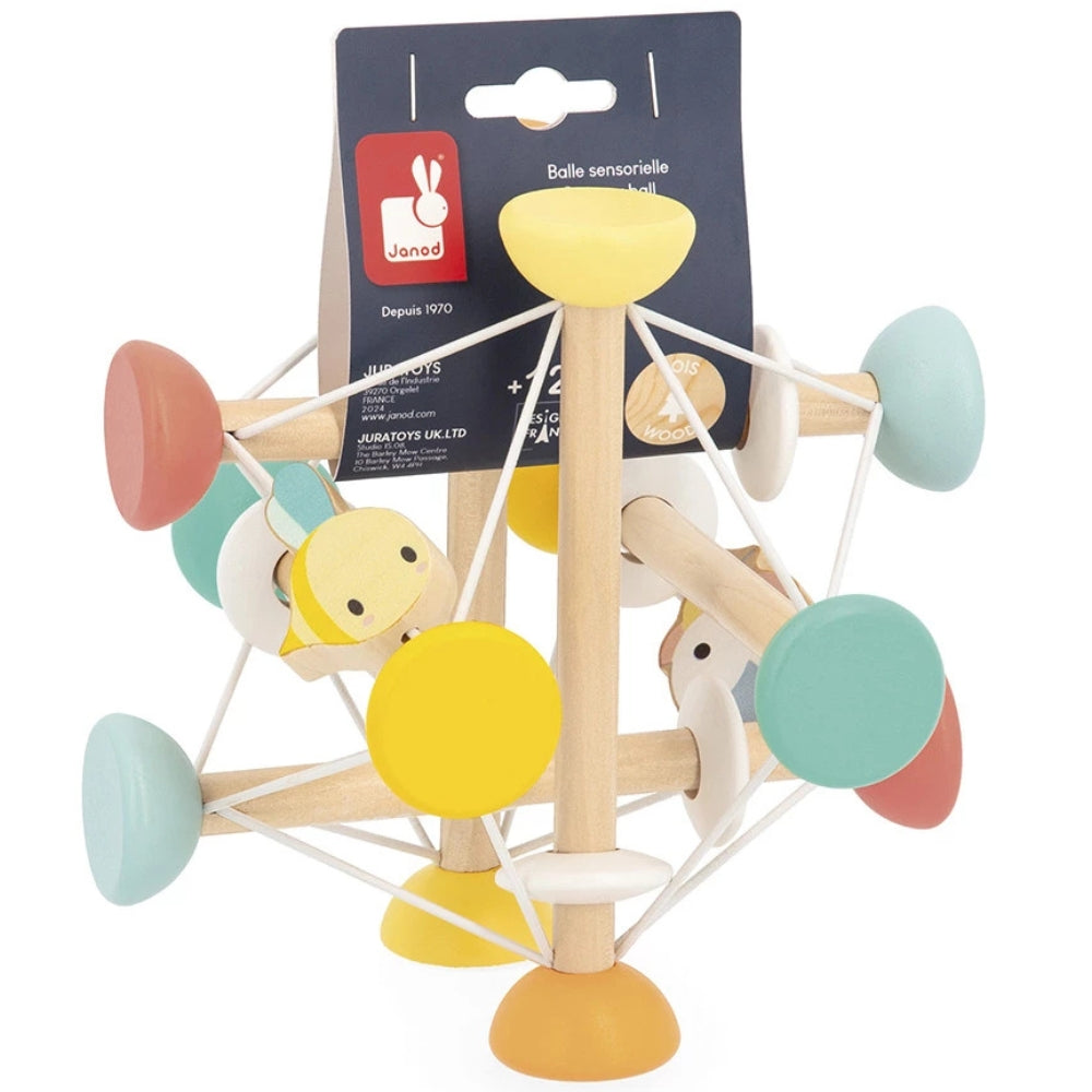 A Janod Sensory Wooden Ball egy kedves fejlesztő játék kisgyermekek számára 1 éves kortól.