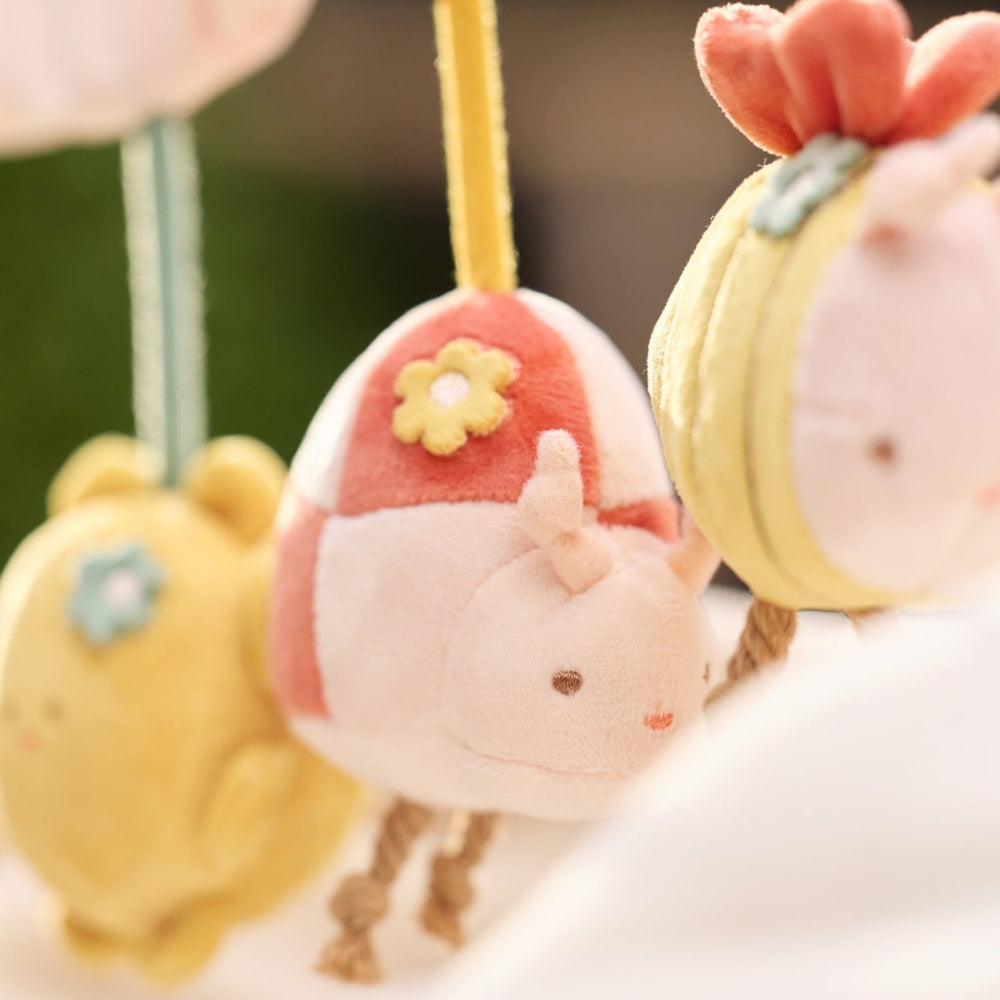 A méhecske kellemes zizegő hangot ad ki, a katicabogár pedig puha csengettyűt tartalmaz.