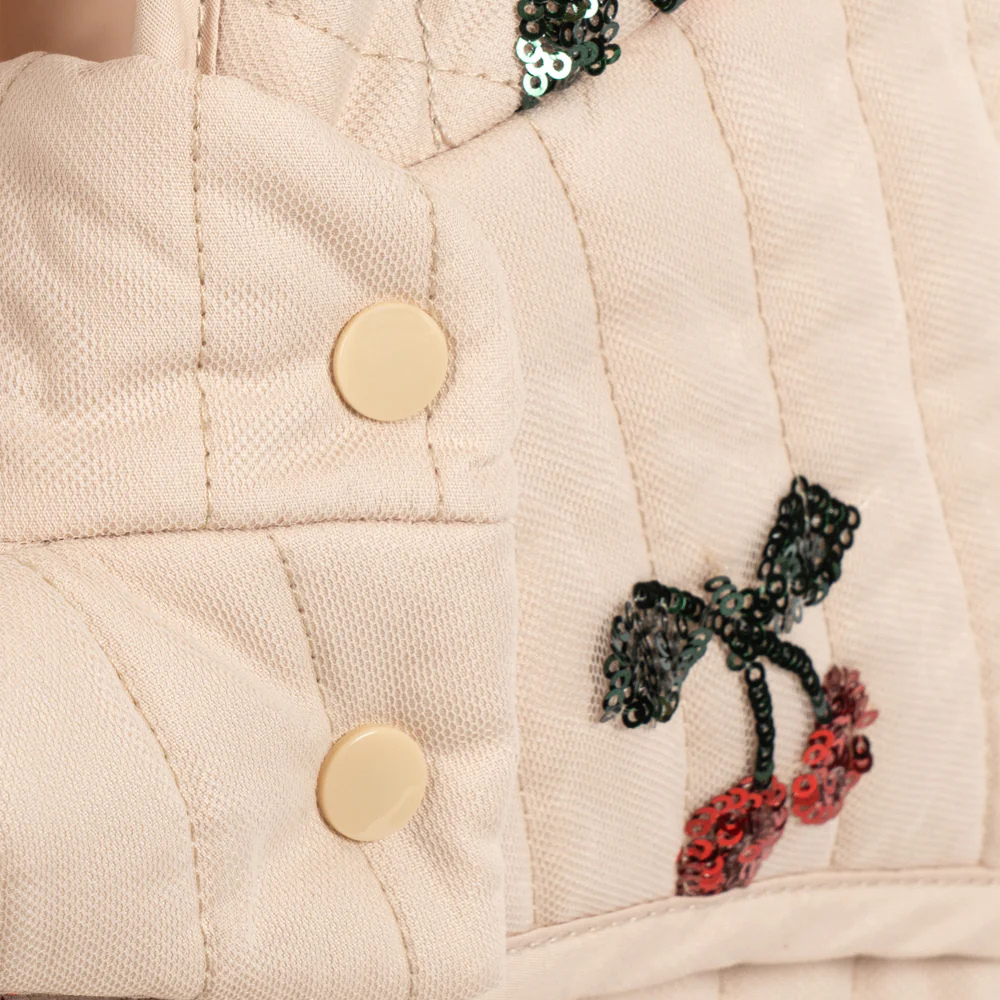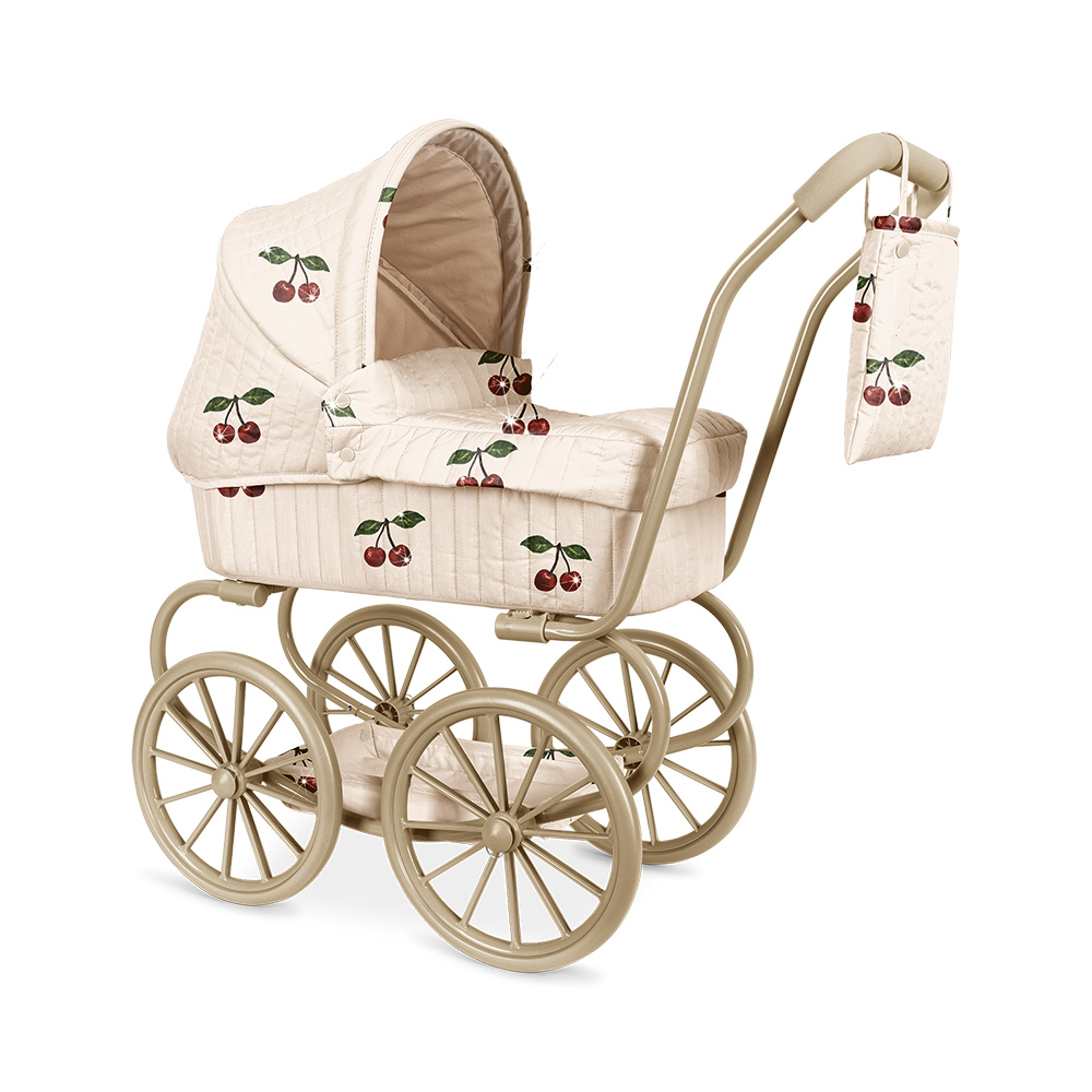 A CHERRY jellegzetes cseresznyemintájával ellátott babakocsi mesélésre, ápolásra és közös sétákra ösztönöz.
