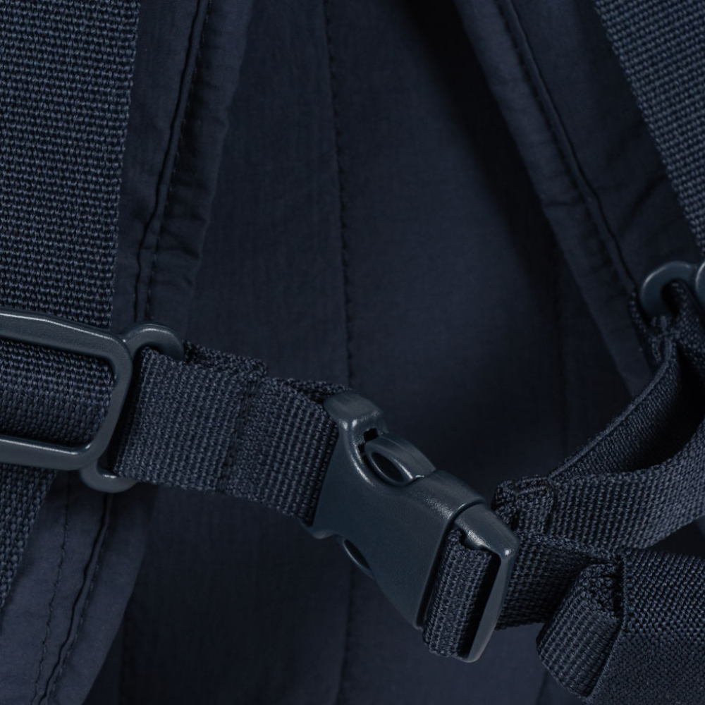 Oldalán egy praktikus palackzseb, elöl egy kis cipzáras zseb található, az állítható mellkaspánt pedig stabilizálja a vállakat és egyenletesen elosztja a súlyt.