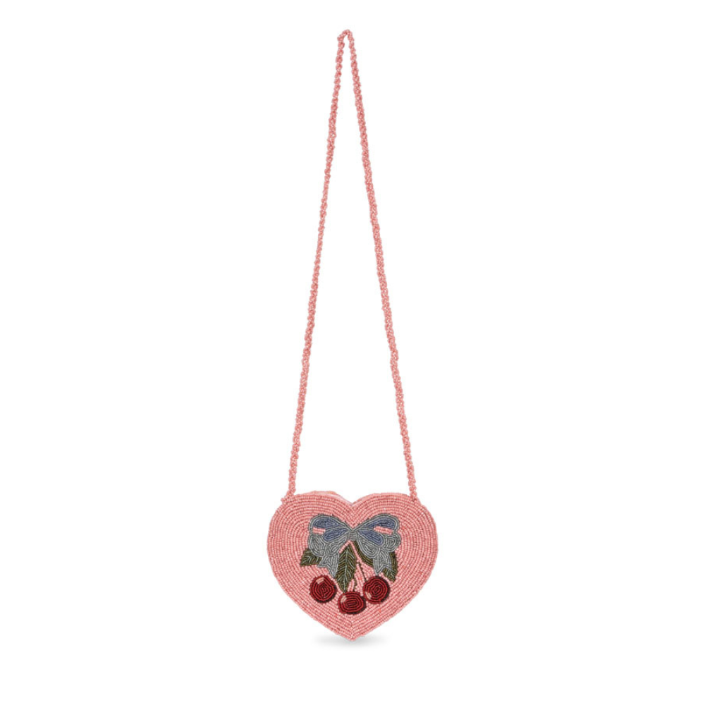 A Konges Slojd szív alakú táskája imádnivaló kiegészítő a stílus kis szerelmeseinek - tökéletes az első "kincsekhez", sétákhoz és különleges alkalmakhoz. A finom gyöngyöket kézzel varrták fel, így minden egyes darab egyedi.