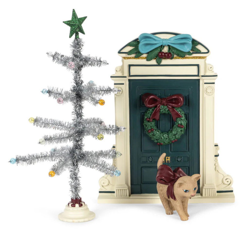 A készlet tartalmaz egy imádnivaló ajtót, egy masnis cicát és egy karácsonyfát, így gyorsan elkészíthetitek a saját mini jeleneteket.