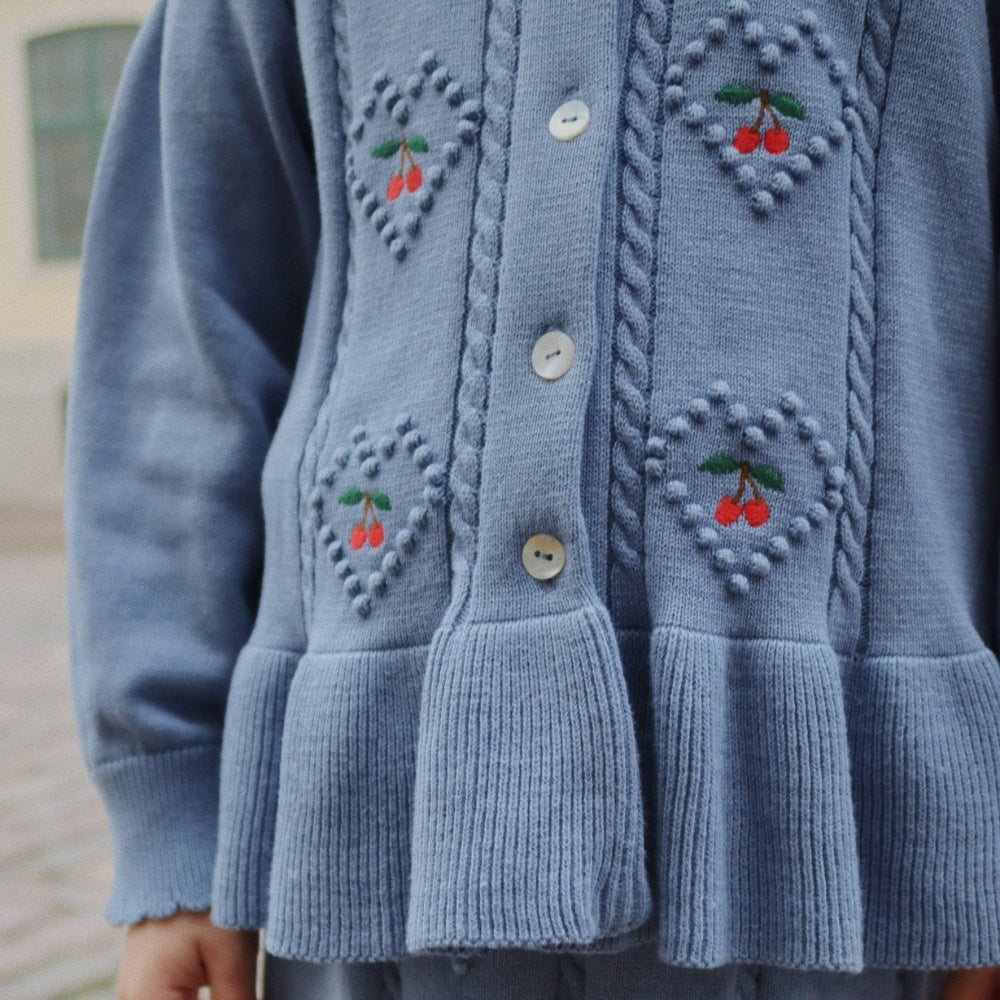 A Konges Slojd lánypulóver gyöngygombokkal és buff ujjakkal egy kedves választás az elegáns kislányok számára.