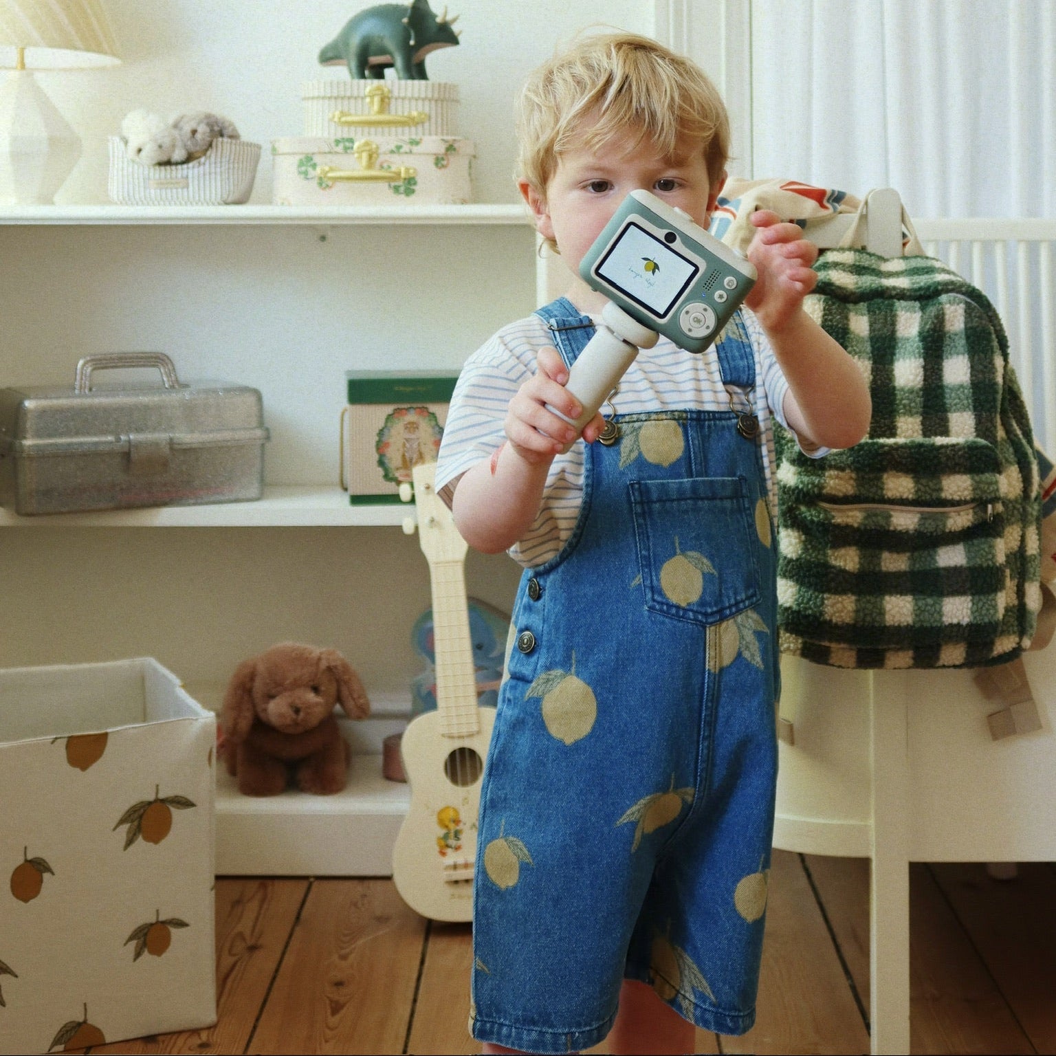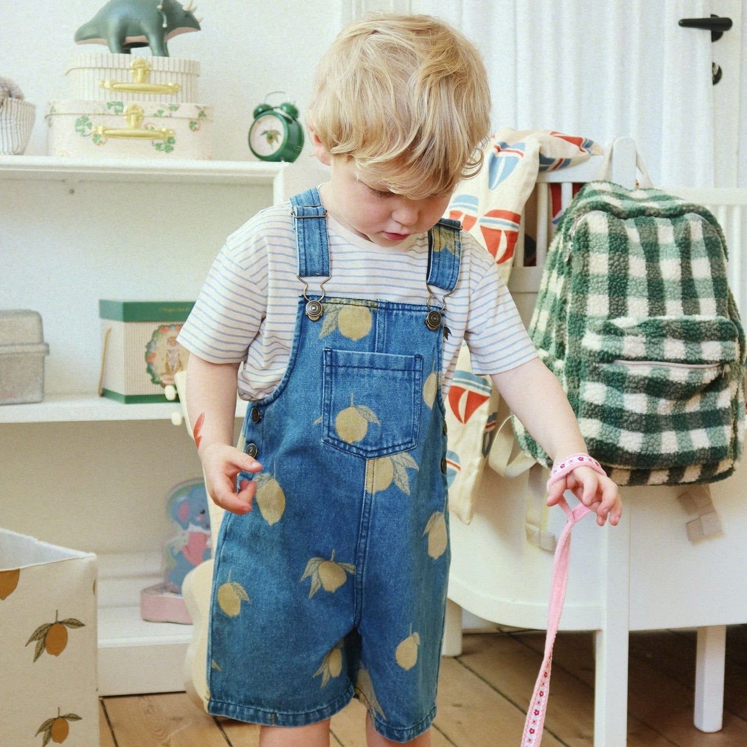 A jellegzetes csatos rögzítés és a KS logós gombok adják azt a különleges bájt, amely a Konges Slojd termékeket jellemzi.